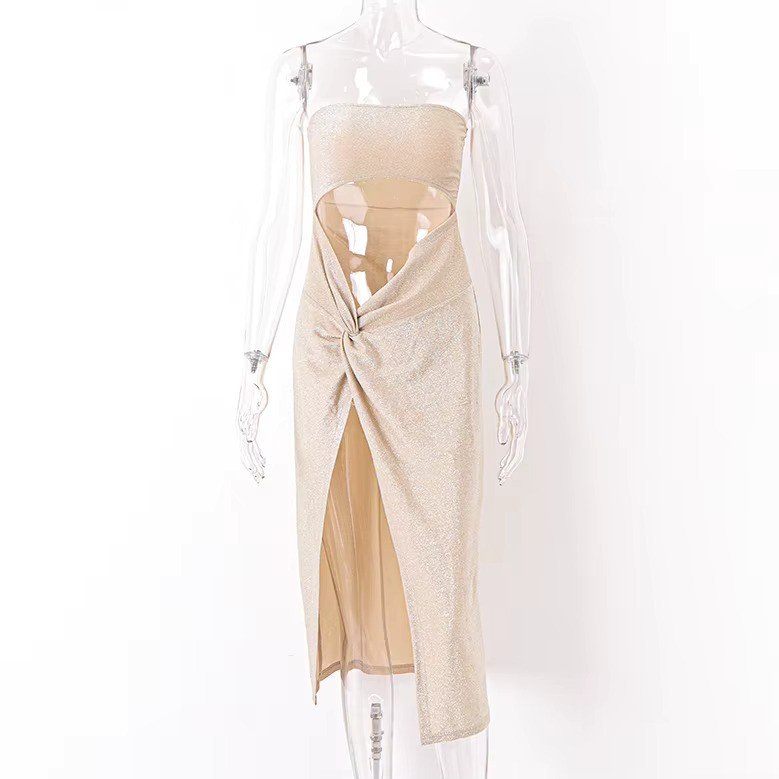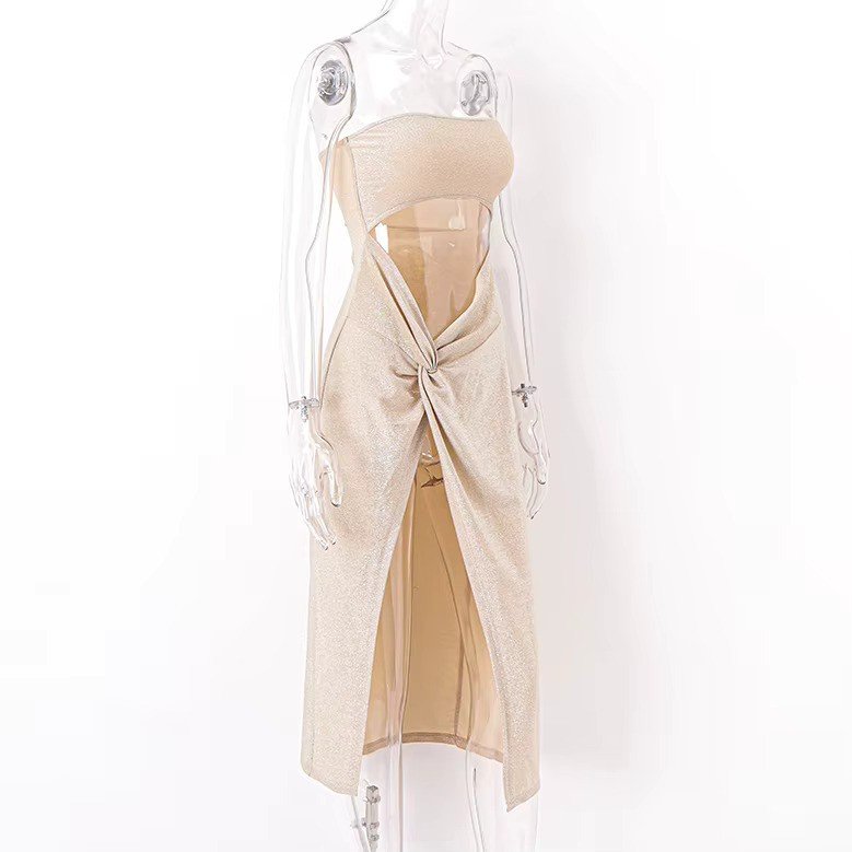Strapless Cut Out High Slit Bodycon Dress Sz S
