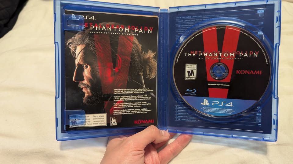1 / 21 / 2Buy & SellPS4 Game MGS5 Metal Gear Solid V The Phantom Pain Day OnePS4 Game MGS5 Metal Gear Solid V The Phantom Pain Day One$12Pick up at Queen-Pape or Bloor-Yonge.WHERE TO MEETCheck LocationView MapSELLERverifiedKyleLeslieville19614 reviews0 chats·0 favorites·7 viewsSEND CHAT TO SELLERHi Kyle! I’m interested in your listing.Hi Kyle! I’m interested in your listing.Get the Karrot app to chatSign In to chat