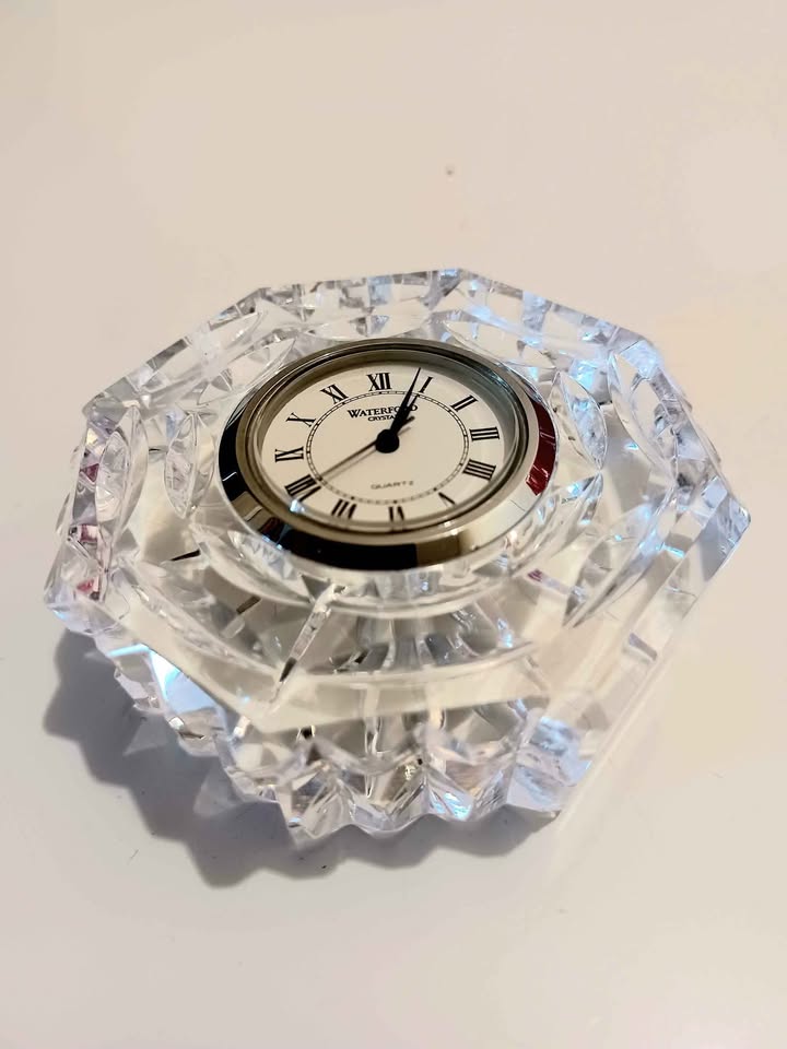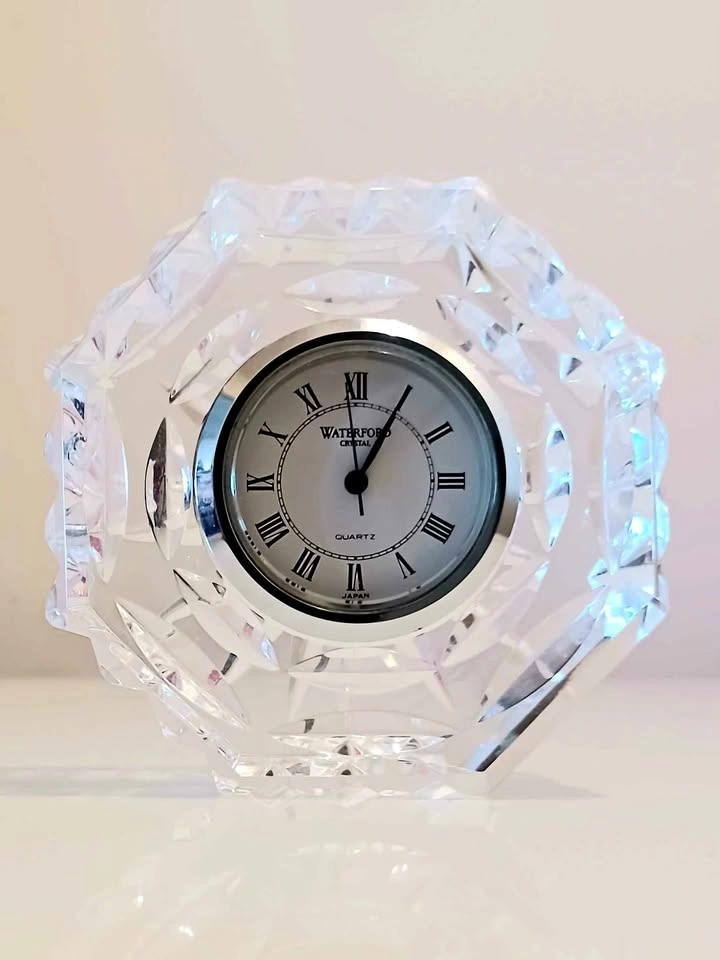 Vtg.Collectible, Rare, Household Octagonal Waterford Desk / Mantel Clock Stamped on Dial & Crystal Waterford Excellent Condition, no chips or cracks Fresh Battery.