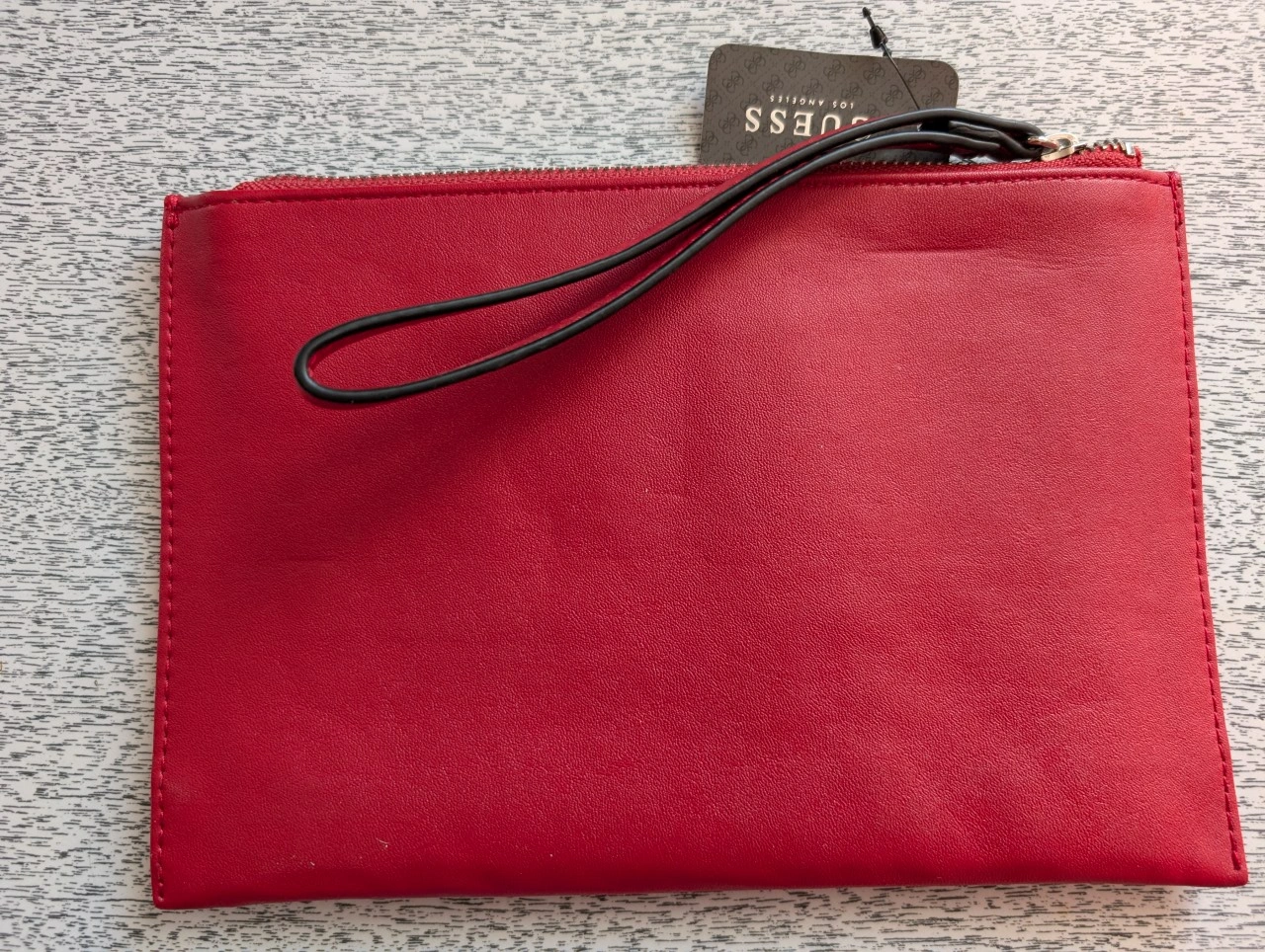 38Selling a cute red Guess clutch bag! It's in excellent condition and never been used. Features a prominent silver 'G' logo on the front. Perfect for carrying your essentials in style. I won't answer generic/pre selected/is this available messages Cash only - pickup only