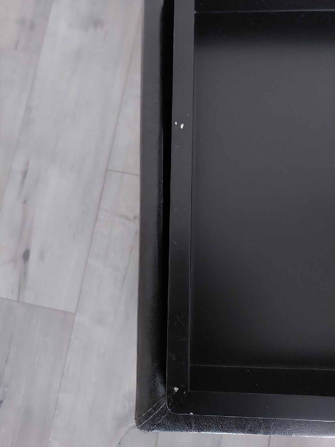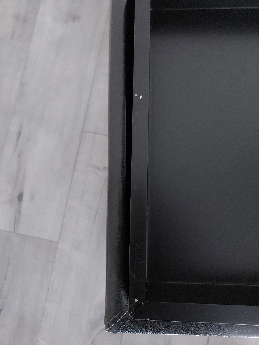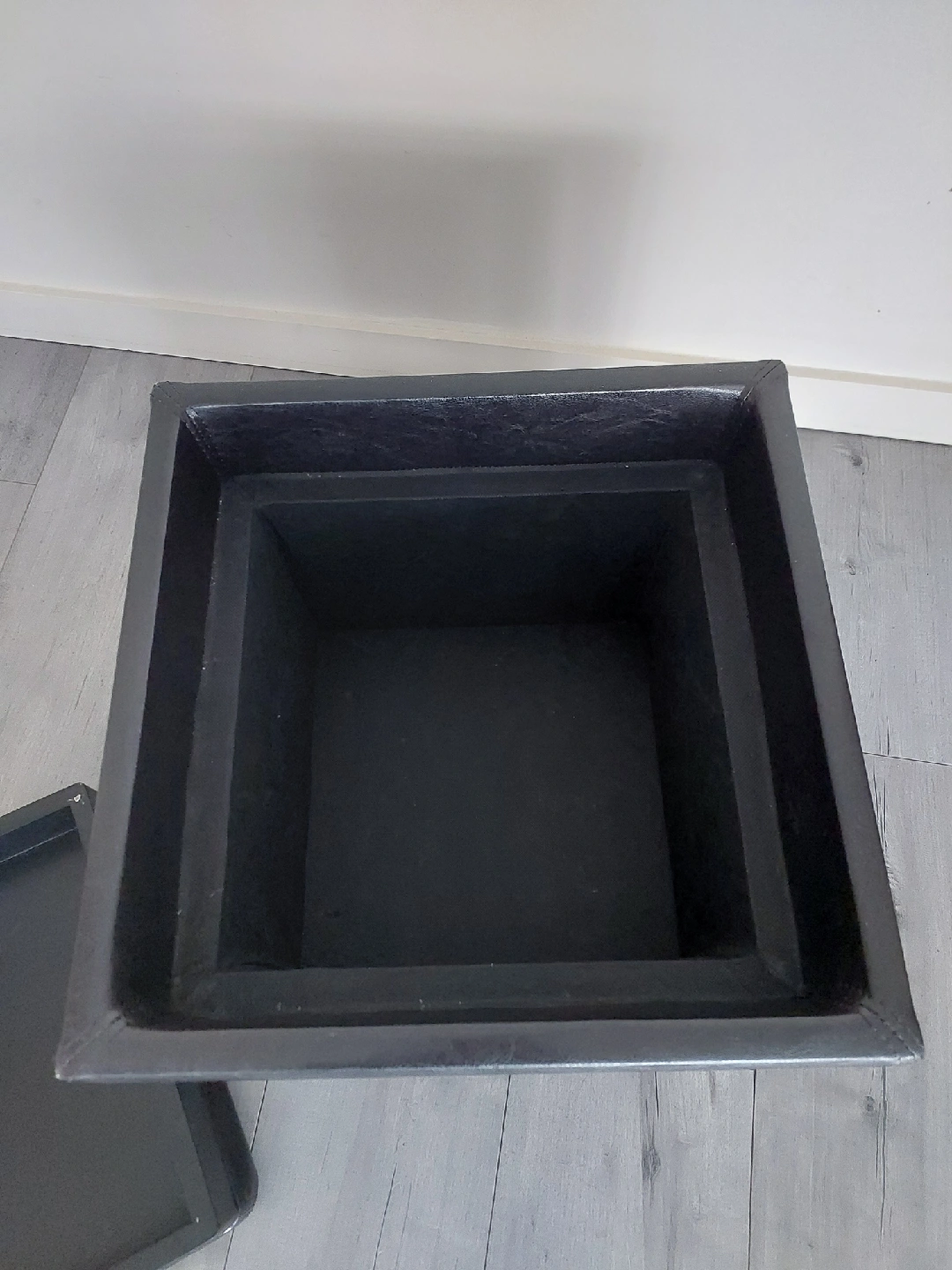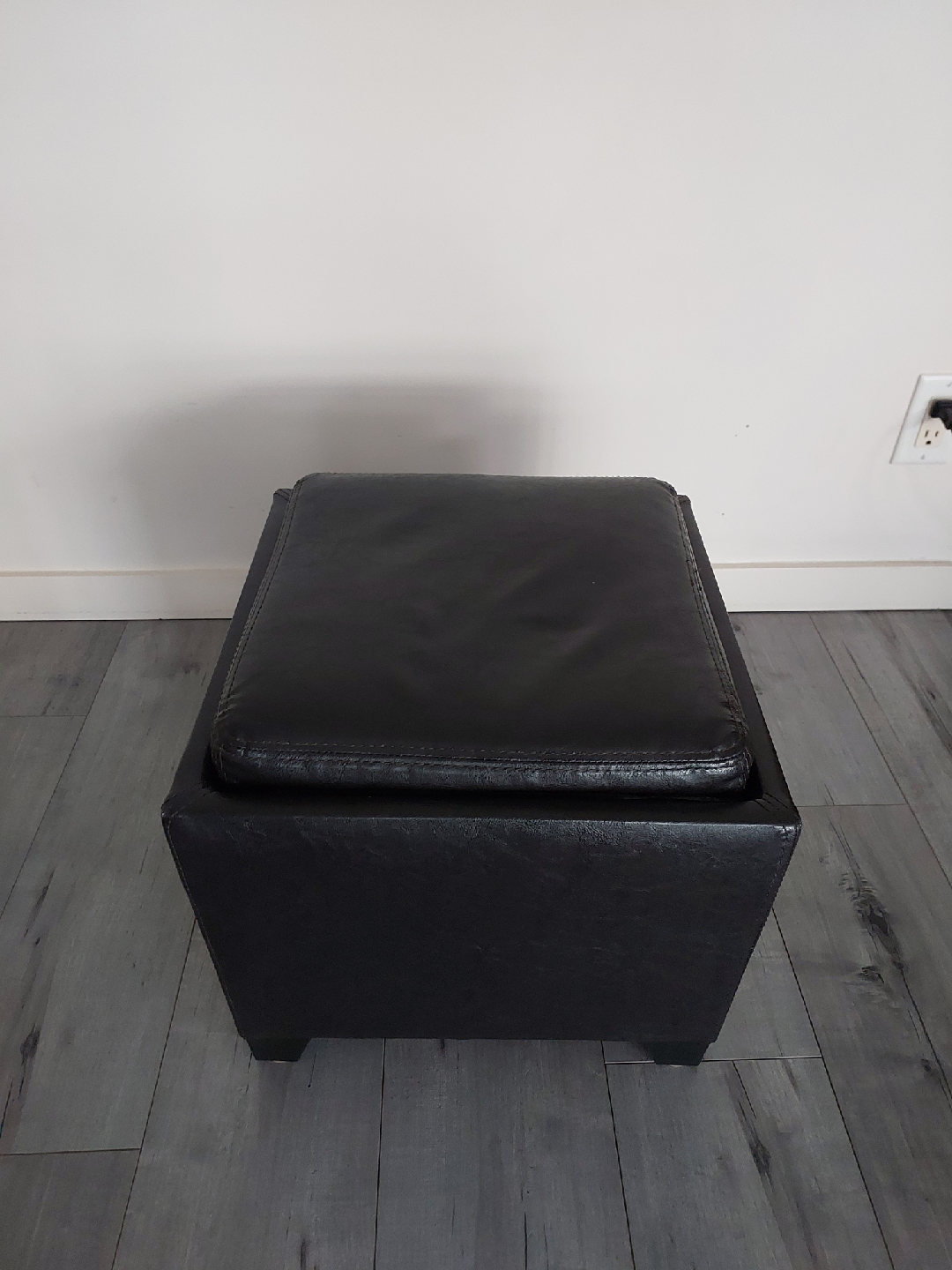 Looking to add some stylish storage to your place? This square storage ottoman is perfect! It comes with a removable tray, so you can easily use it as a coffee table or for serving snacks. It measures about 15" tall and is 16"x16" inches in width and depth . Please note there are some minor scuffs on the inside frame of the tray (photos included).