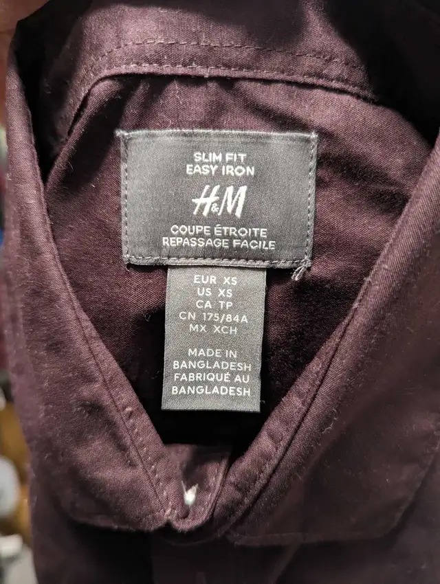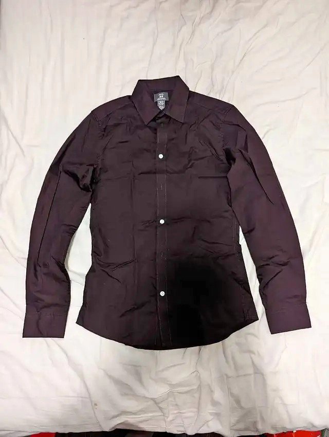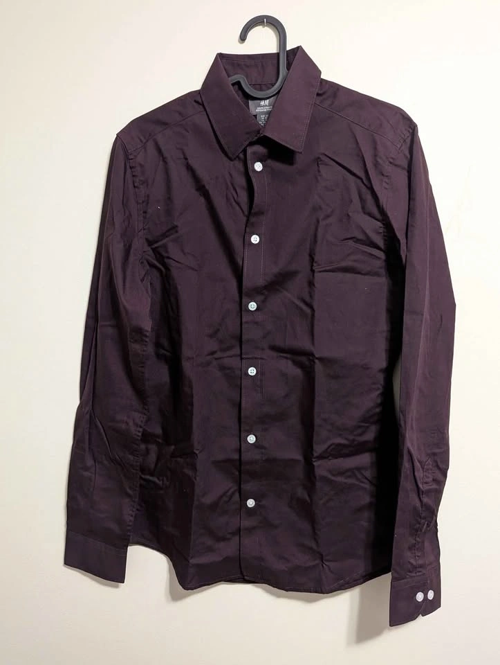 H&M Men's Slim Fit Long Sleeve Shirt Burgundy XS
