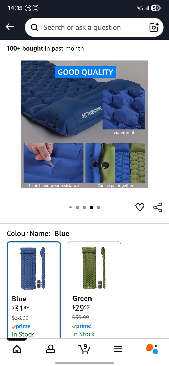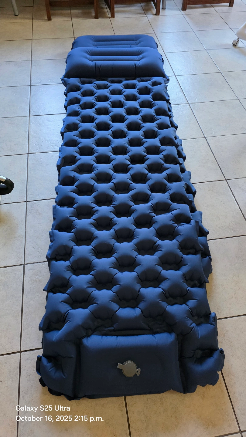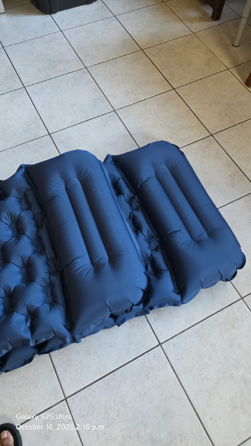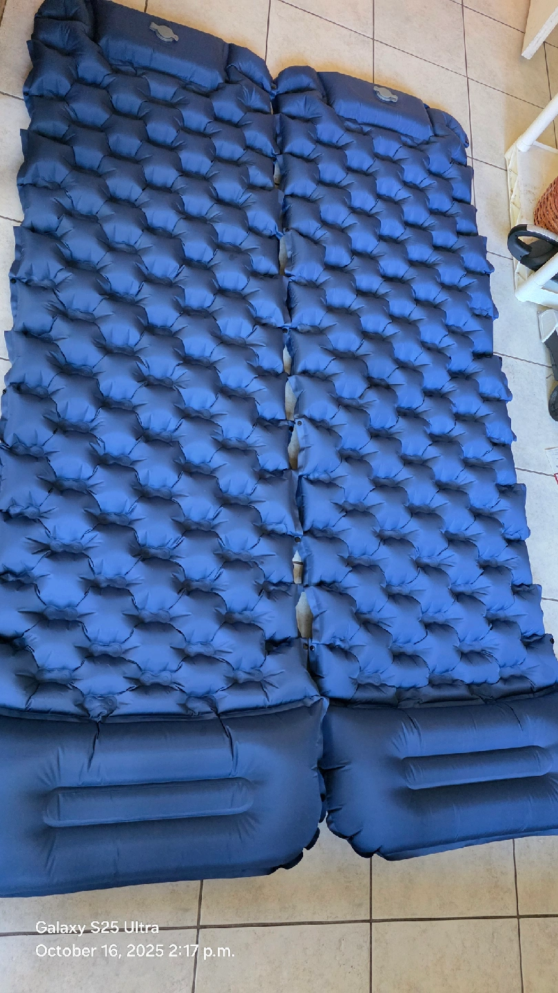 161Get ready for your next camping trip with this TurnWay self-inflating sleeping pad! It's in great condition and ready to provide a comfortable night's sleep under the stars. This blue sleeping pad is waterproof and scratch/wear resistant. It can also be put together with another pad for double the comfort. It's lightweight and comes in a convenient size pad for easy packing! no bag included. $20 each $30 for both