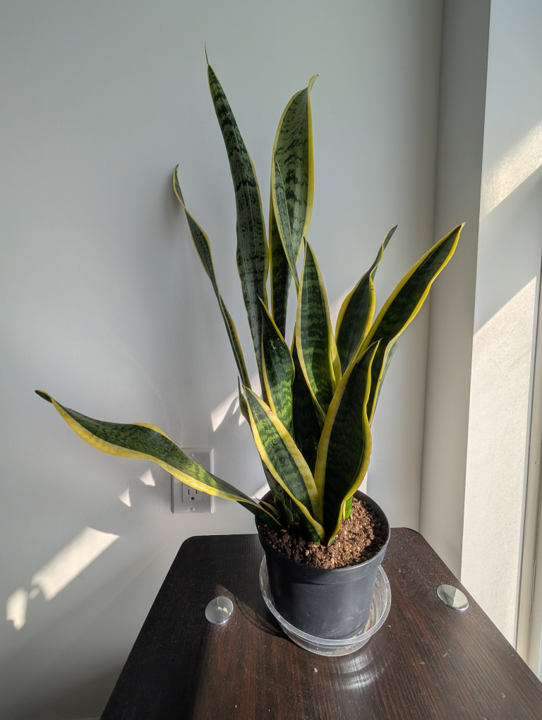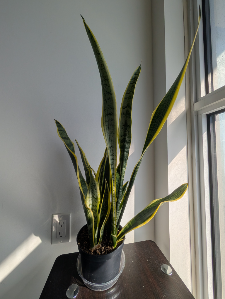 Selling a healthy snake plant in a black pot! It's a great low-maintenance houseplant that's perfect for adding a touch of greenery to your home