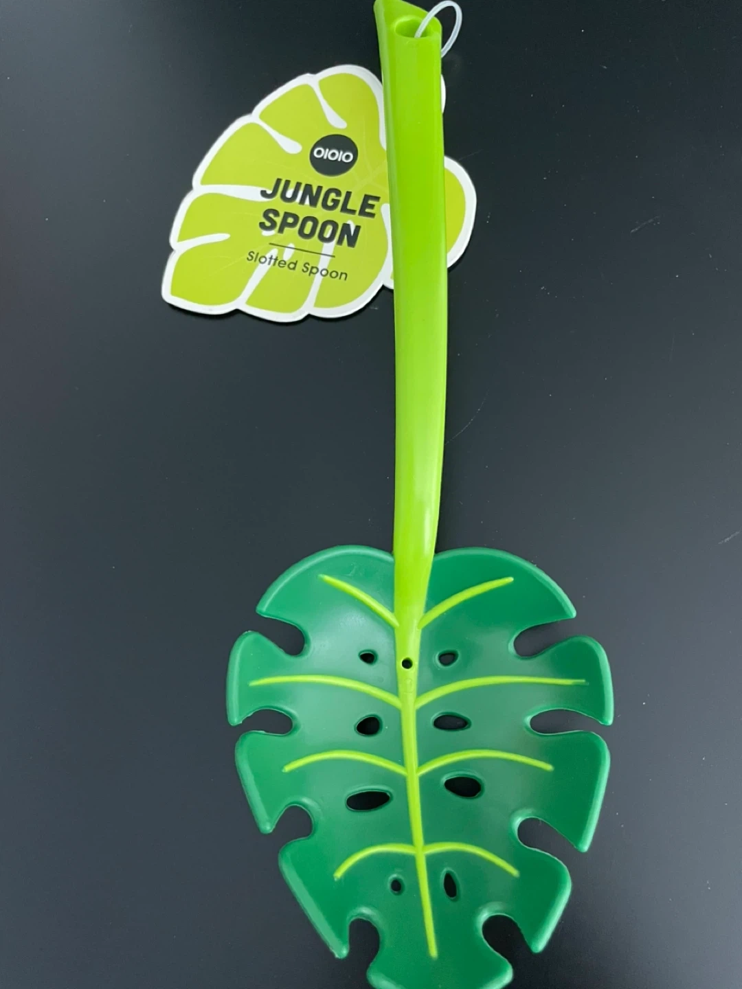 Check out this fun OIOIO Jungle Spoon! It's a slotted spoon shaped like a monstera leaf. Perfect for adding a touch of whimsy to your kitchen