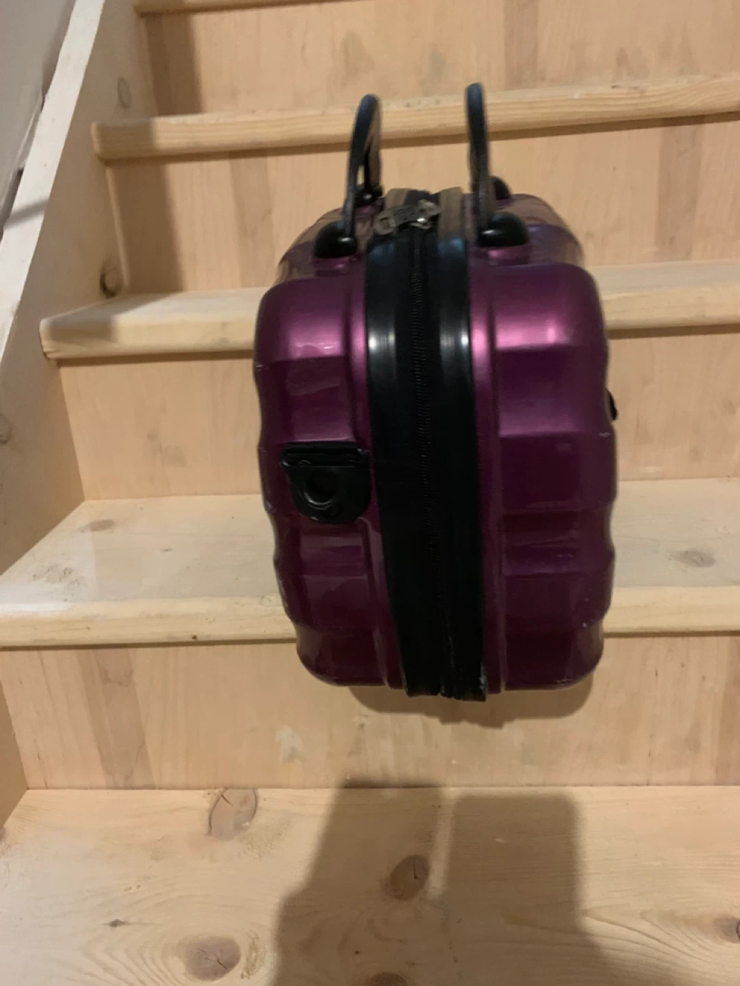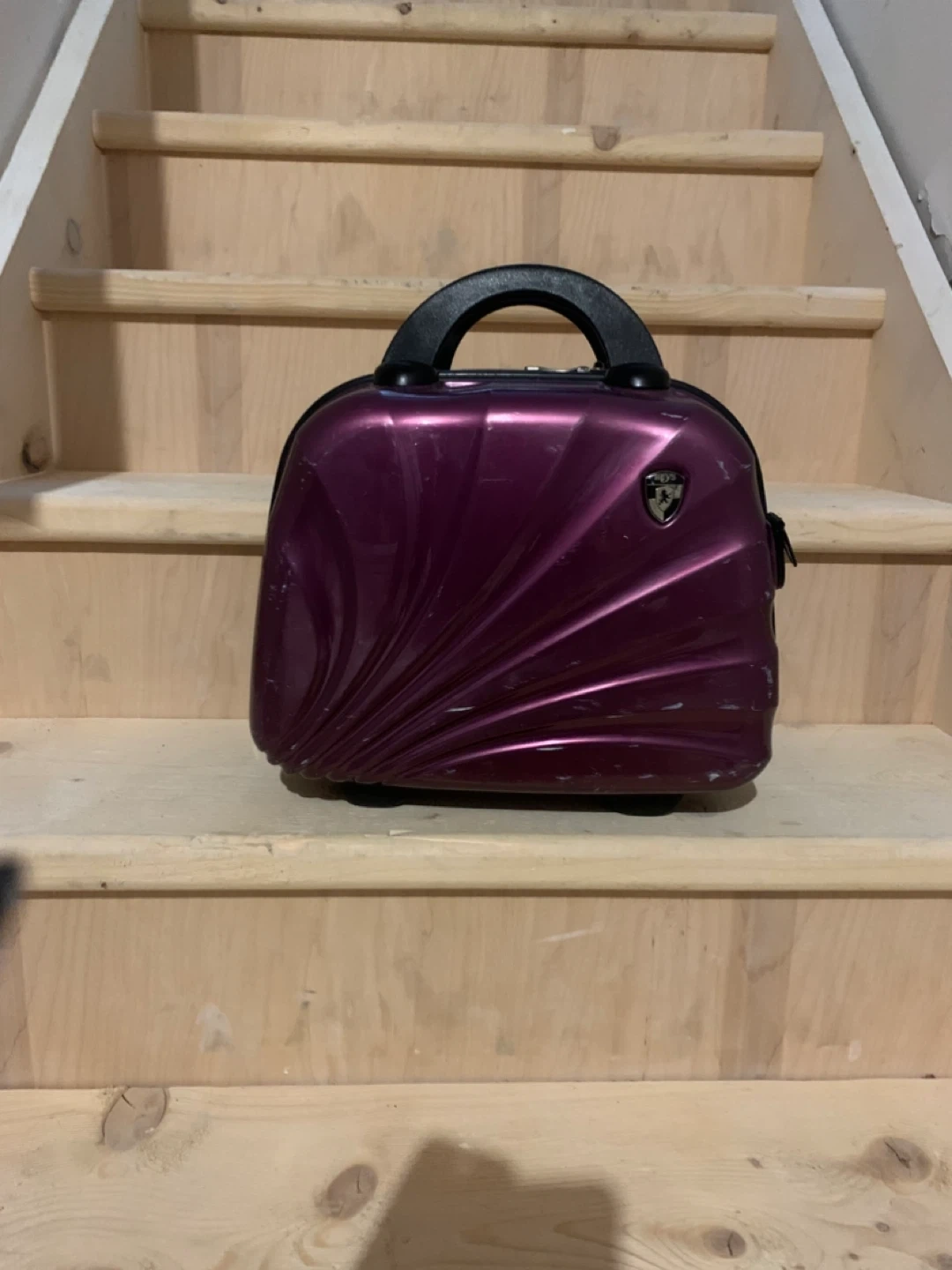 Selling a purple vanity case. It's in good condition and perfect for storing your beauty essentials or for travel. It has a handle on top for easy carrying and a zipper closure to keep everything secure