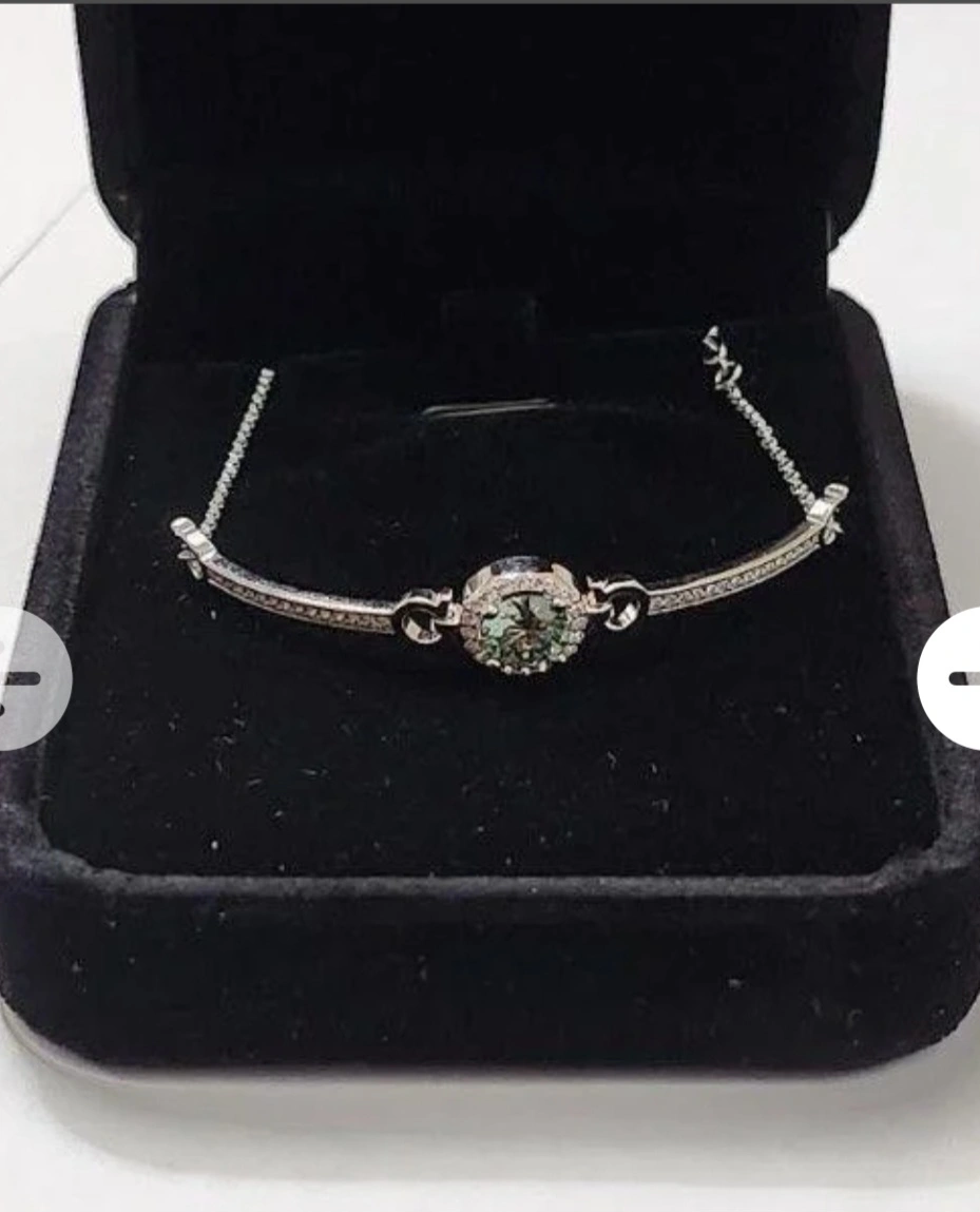 10This elegant ring features a 1.1ct very light green round-cut moissanite in a classic prong setting, surrounded by eighty-six shared prong-set round cubic zirconias (0.06ct). Crafted in sterling silver with a rhodium-plated finish, it offers a timeless sparkle and lasting shine. Appraisal Included. Real Value : $1140 Cash Only Door Pick up .