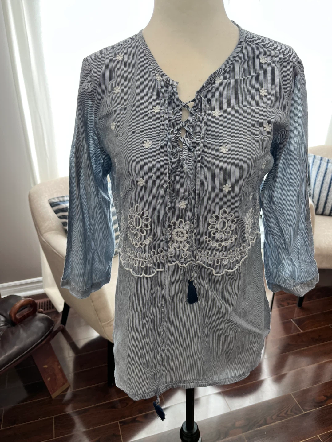 Buy & SellBlue Striped Lace-Up BlouseBlue Striped Lace-Up Blouse$15It says medium, but fits like a smallConditionGoodBrandSTOPWHERE TO MEETBendaleView MapSELLERverifiedSarahBendale34834 reviews1 chats·0 favorites·13 viewsSEND CHAT TO SELLERHi Sarah! I’m interested in your listing.Hi Sarah! I’m interested in your listing.Get the Karrot app to chatSign In to chat