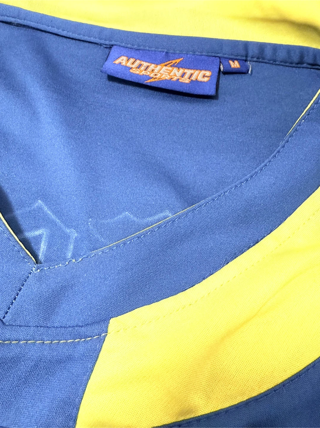 Selling a soccer jersey featuring Corona and Coca-Cola logos! It's an Authentic brand jersey, size medium, in blue and yellow. The material is 100% polyester and it's machine washable. Perfect for any soccer fan!