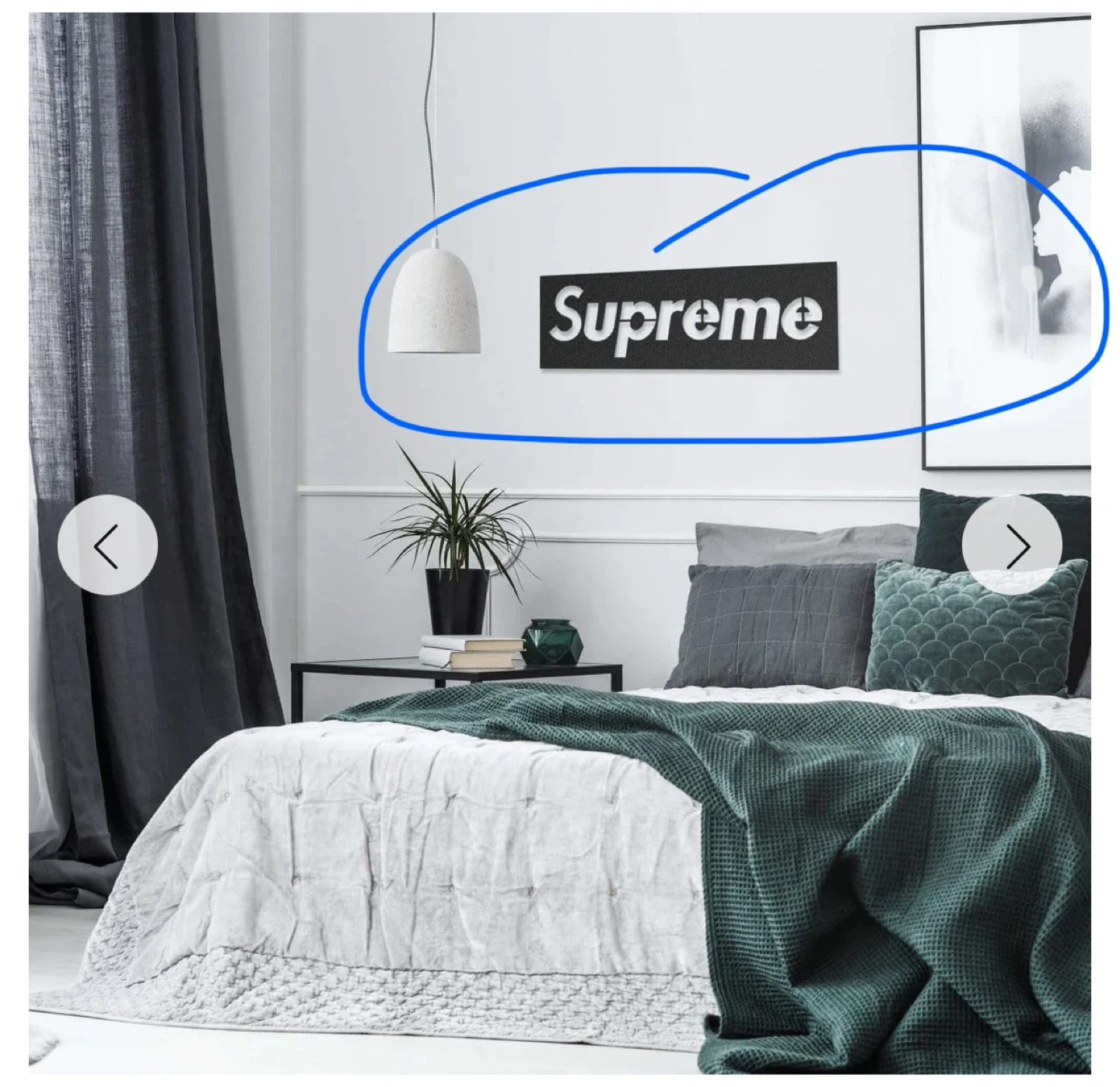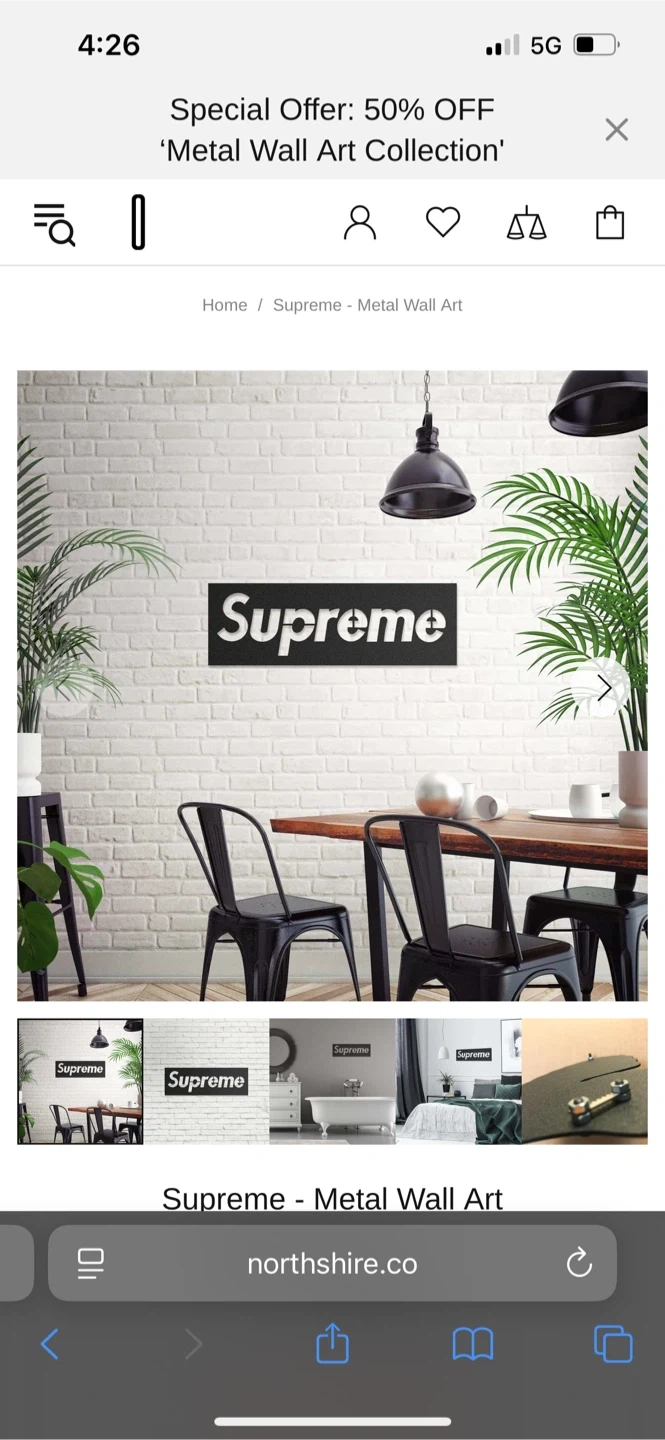 Supreme metal wall art, perfect for adding a modern touch to any room! This piece is in great condition and ready to hang. It's a stylish way to show off your unique taste in home decor