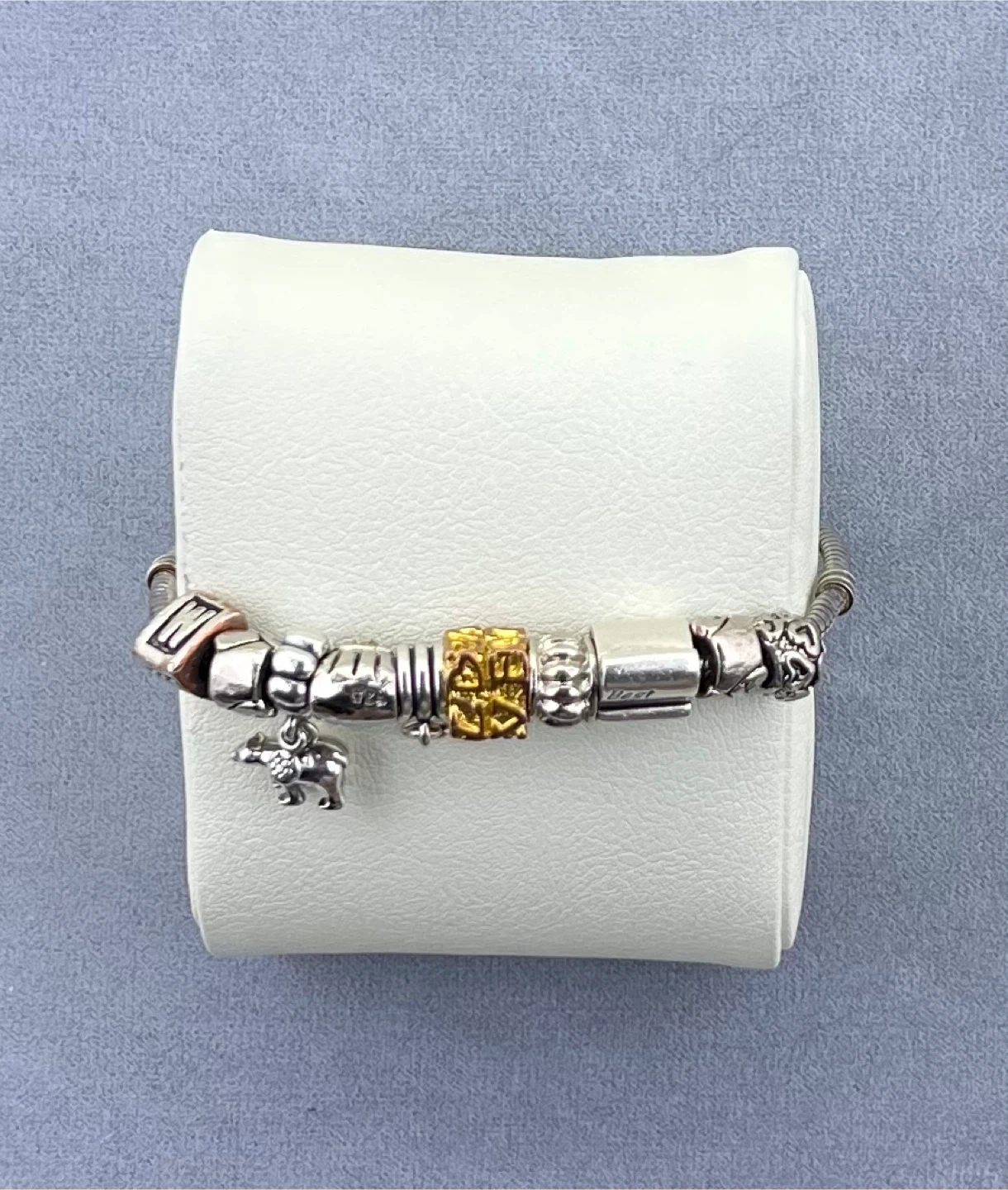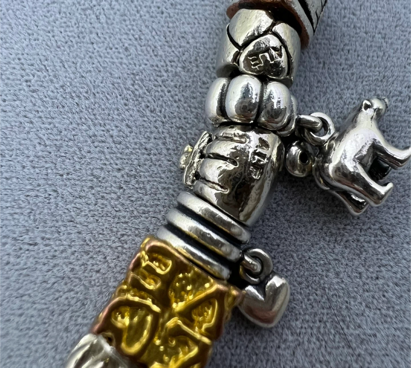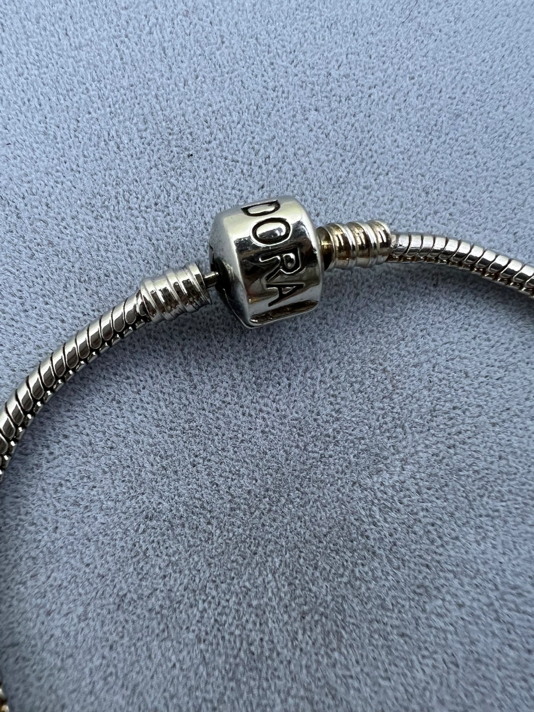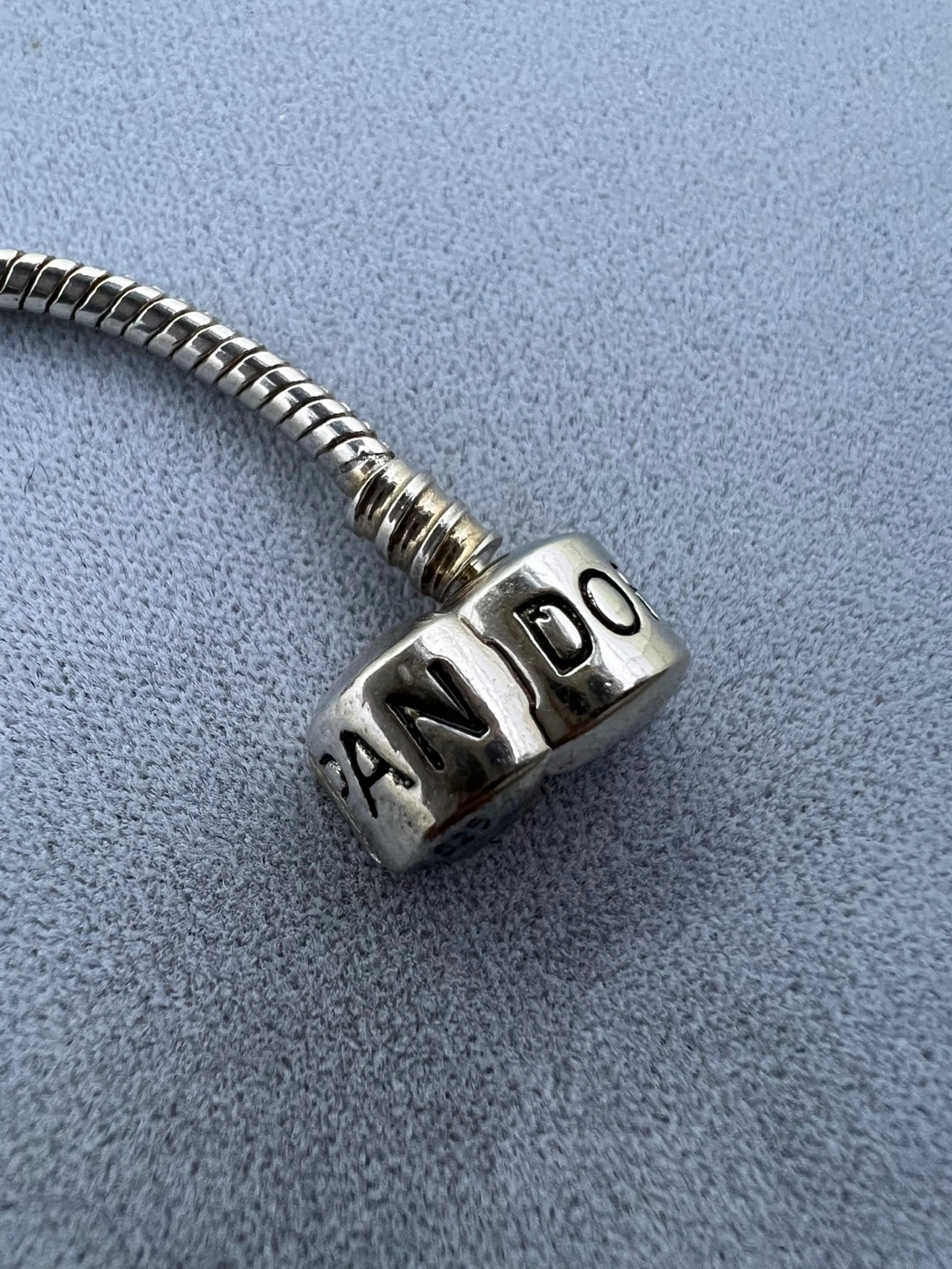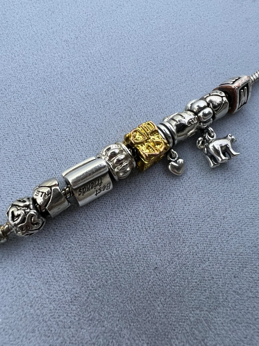 579Variety of beads/charms (10 in total) Plenty of room to add more… Standard Pandora clasp Almost 8” long Preloved Great condition —NOTE— YES - authentic Pandora YES - all the charms are marked 925 ALE (Pandora hallmark for sterling silver) NO - I am not selling charms separately Asking $75 Interested? Message me and please check my other listings…