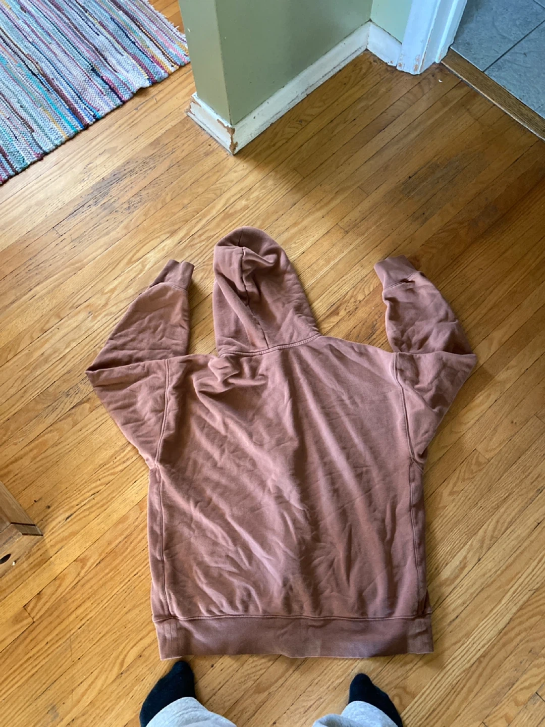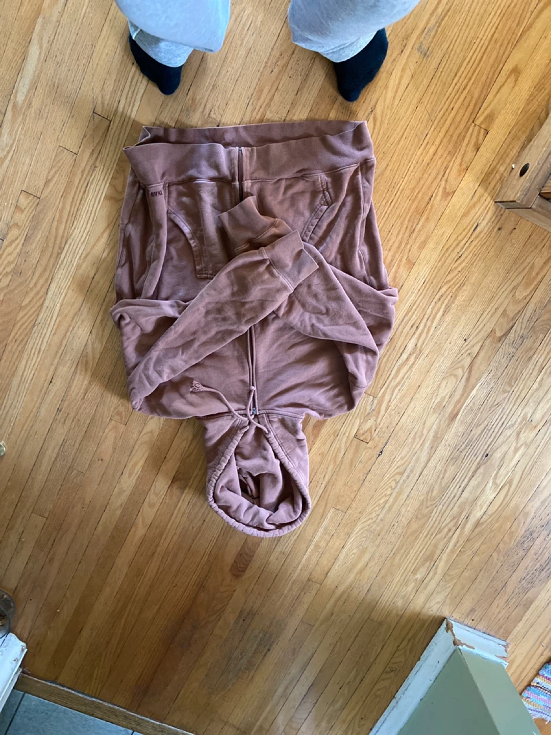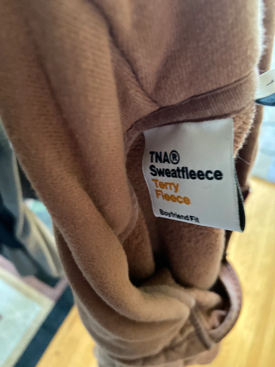 Selling a TNA Sweatfleece Terry Fleece hoodie in a boyfriend fit. It's a size large and made in Vietnam. Perfect for cozy days! Note zipper broke, definitely a easy fix still functioning just fine also