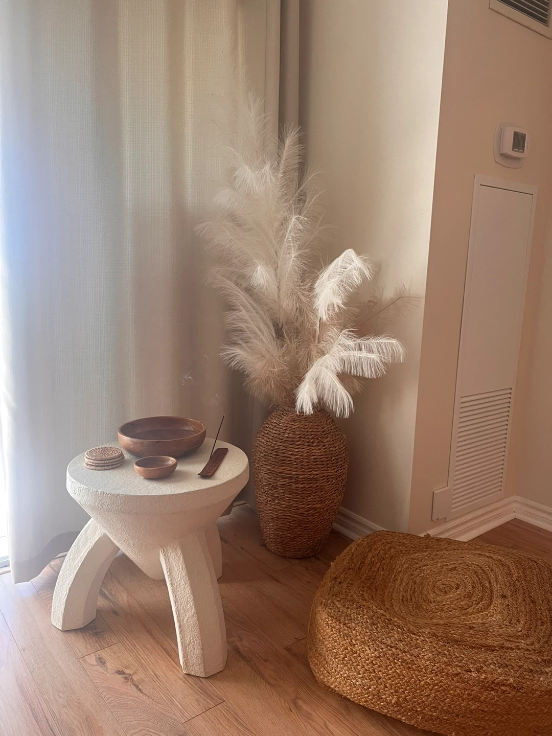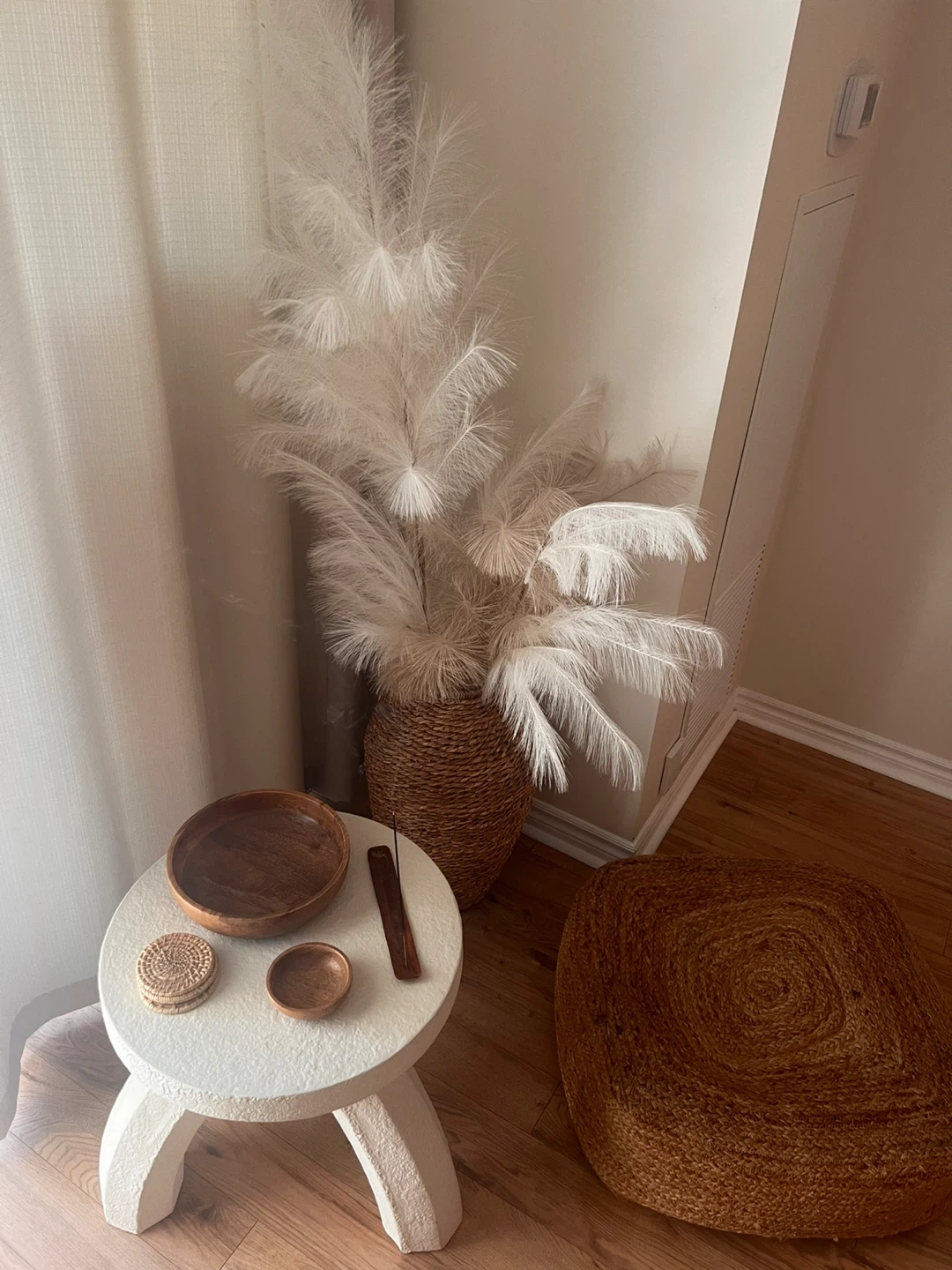 632‼️ PART OF A MOVE OUT SALE 🚨 Last few living room items that need a new home 🥲. Moving out of the country and need these gone before the end of the month. - Crate and Barrel Accent Concrete Table $350 - Hand Woven Vase & Pampas $85 - Jute woven ottoman $20 If you want this bundled I can offer all of it at $435. Includes everything in the picture 😊 Cash only. Thank you!!