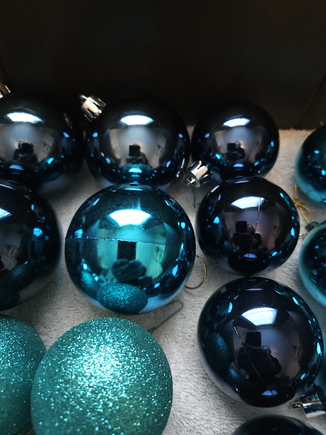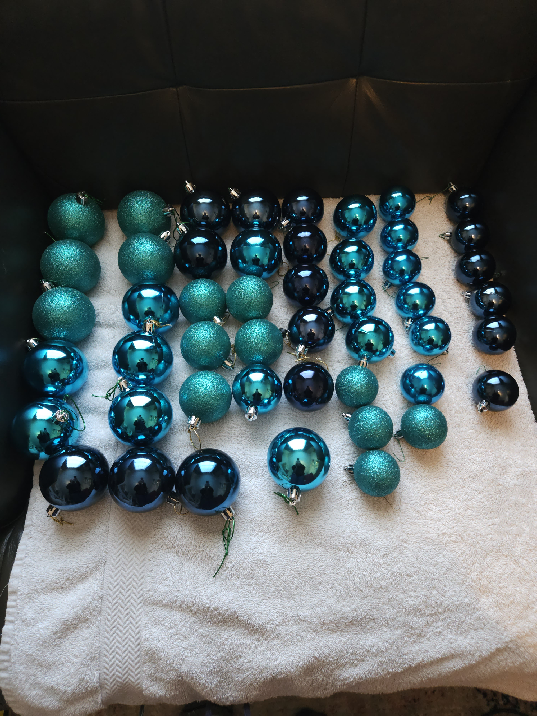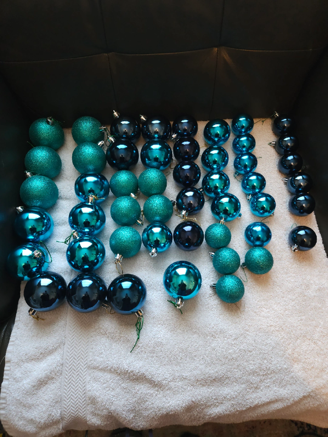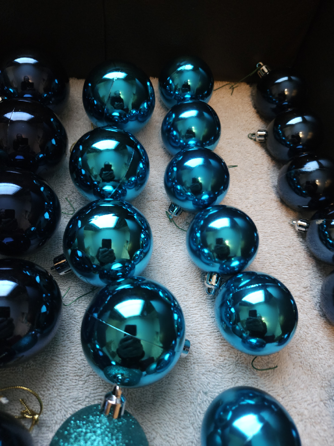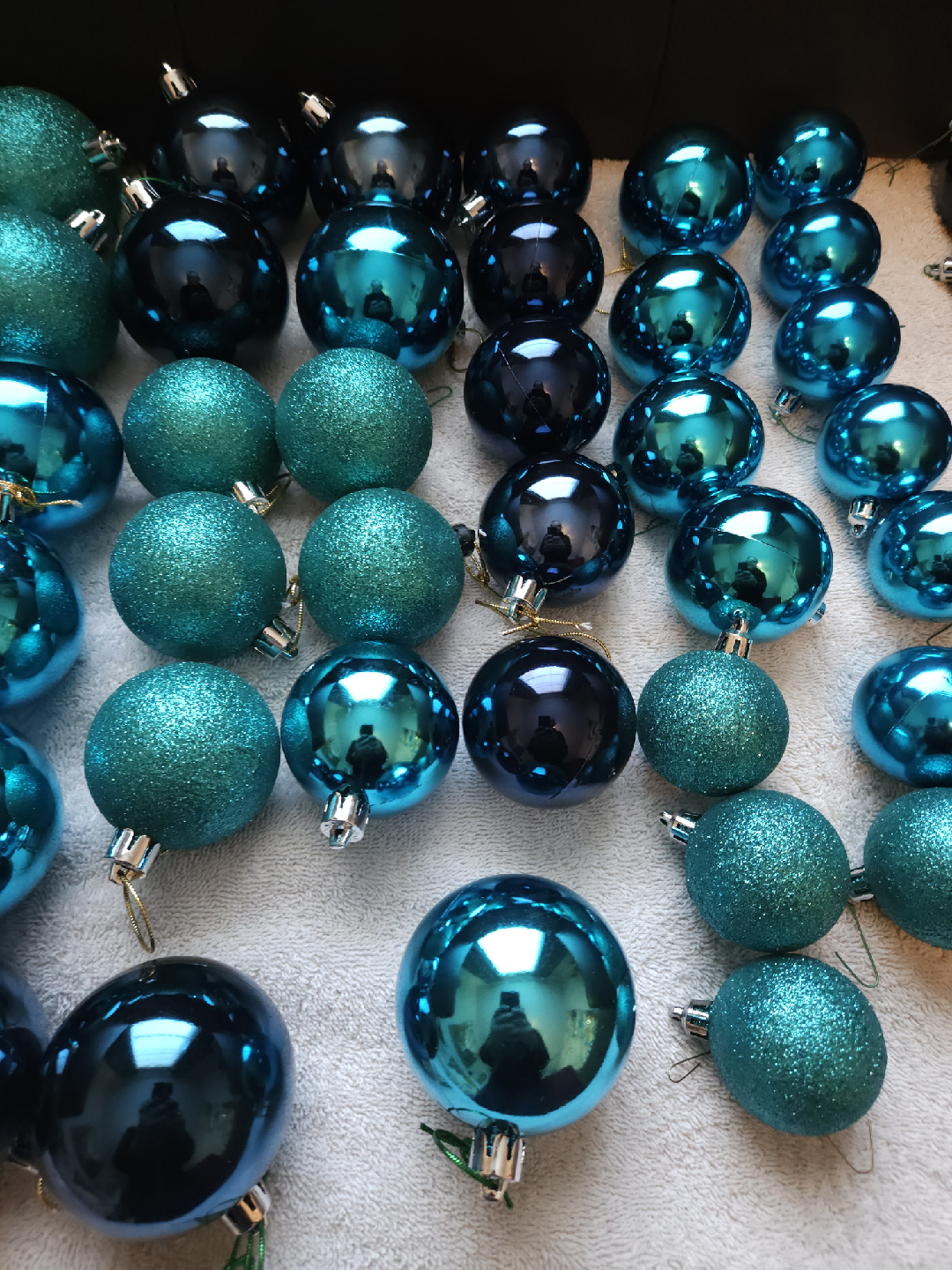 Selling a set of 49 blue Christmas ornaments in a few shades of blue and a couple of different textures. They're in great shape and ready to decorate your tree this holiday season.