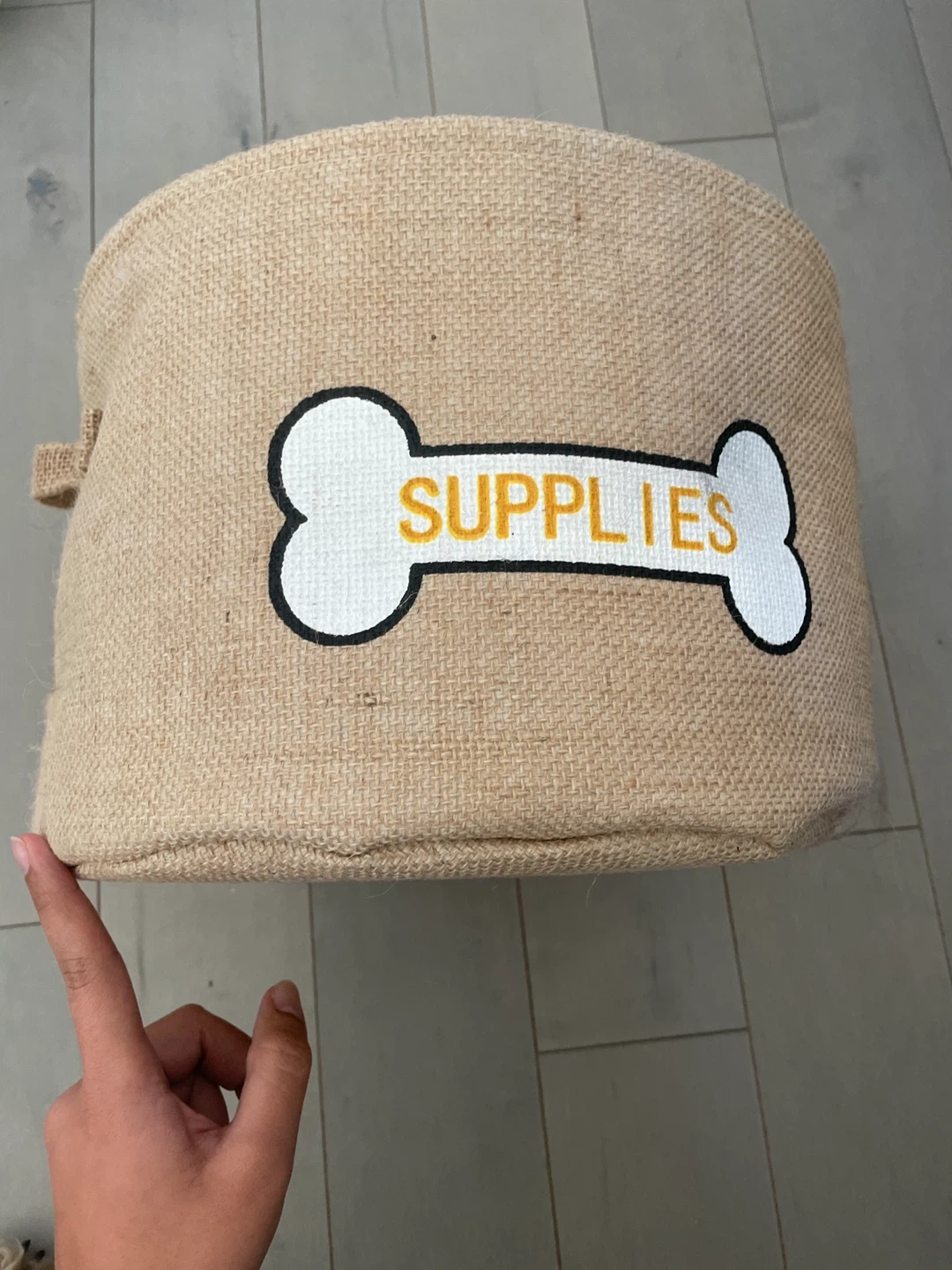 277Here's a cute storage basket for your furry friend's supplies! It's in great shape and ready to help keep your pet area tidy