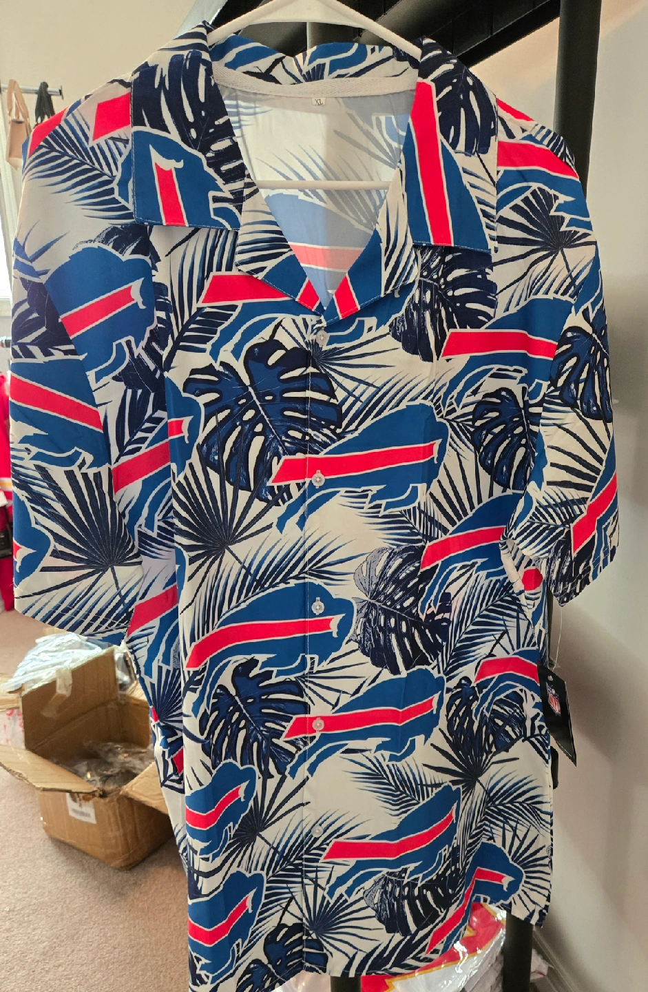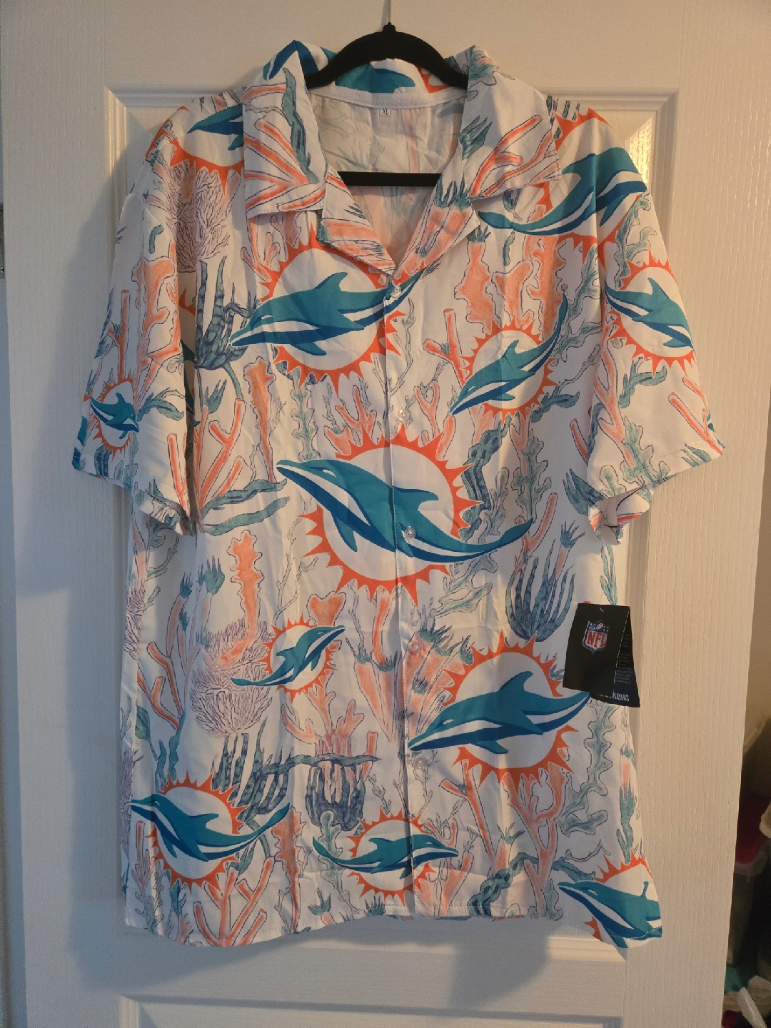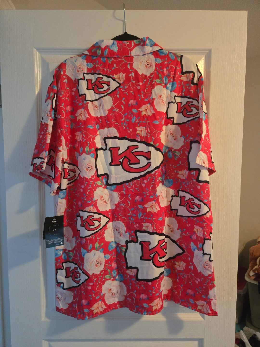 Selling a collection of NFL Hawaiian shirts! Each shirt features a different team: the Philadelphia Eagles, San Francisco 49ers, Miami Dolphins, Minnesota Vikings, and Kansas City Chiefs. Perfect for showing off your team spirit in a fun, tropical style. $60 each