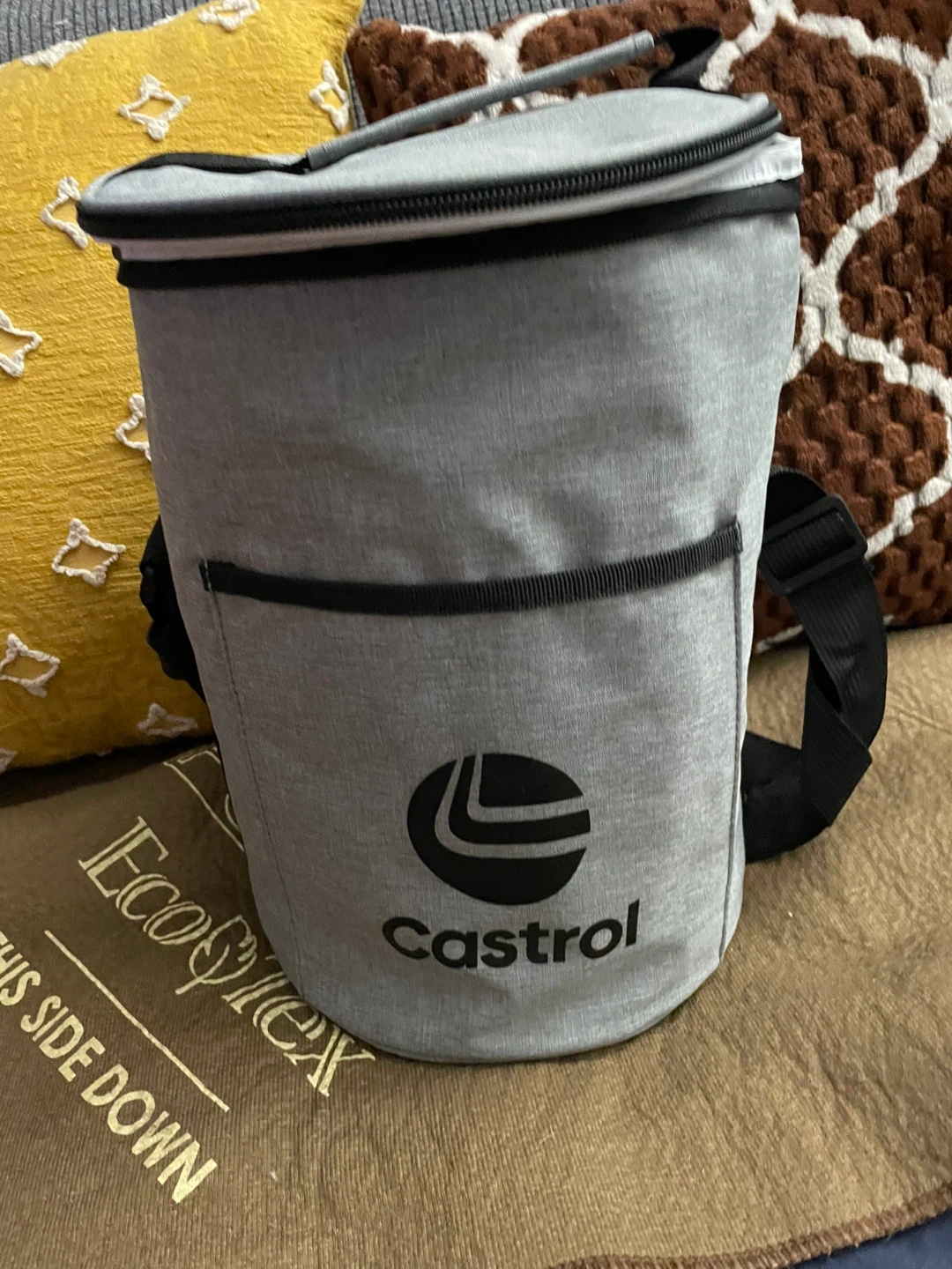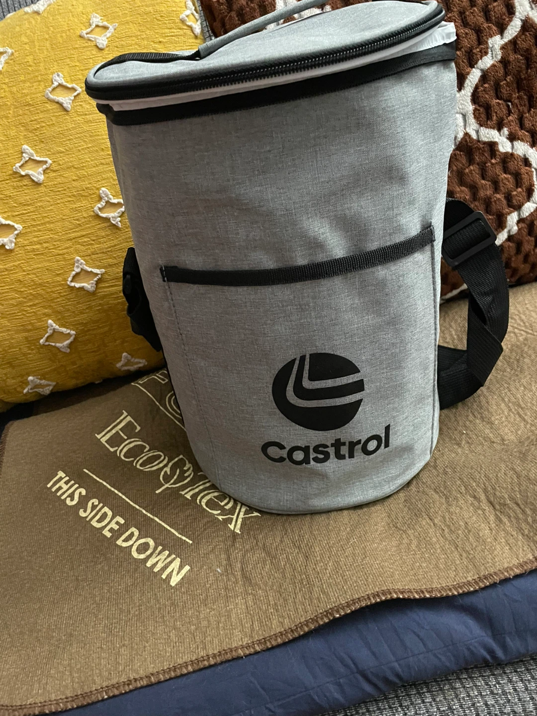 Selling a Castrol cooler bag in excellent condition! It's a stylish and practical way to keep your drinks and snacks cool on the go. The bag features the Castrol logo and a convenient shoulder strap for easy carrying. Perfect for picnics, road trips, or work lunches! Brand new i have 9 total i am selling it each for $16 or if u take all of them each for $12 txt me more details and check out my other items