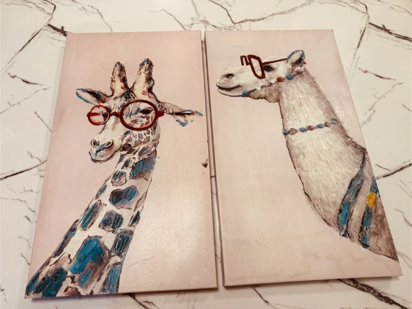 Add a touch of whimsy to your space with these hometrends wall art canvases! Featuring a giraffe and a camel, both sporting stylish glasses.