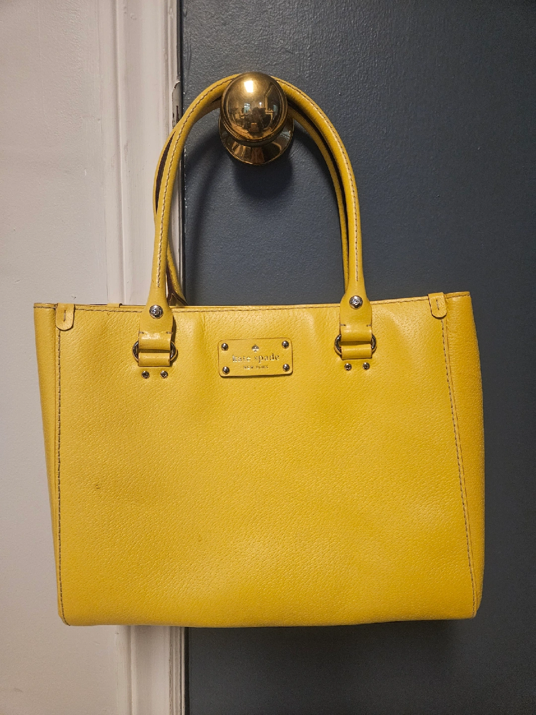 Looking to sell my Kate Spade tote bag! It's a lovely yellow colour and made of leather. It's in great condition and perfect for everyday use!