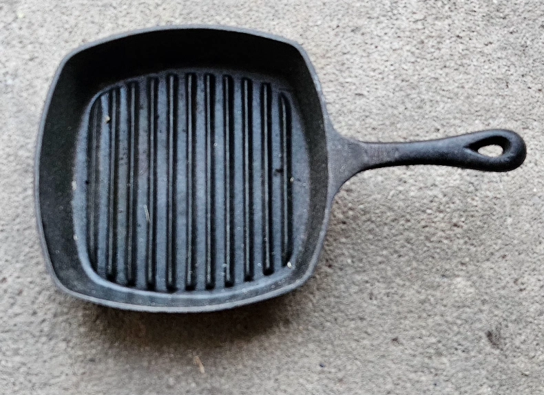 Selling a cast iron grill pan. It has some signs of use, but it's still in good condition for grilling up your favourite foods!