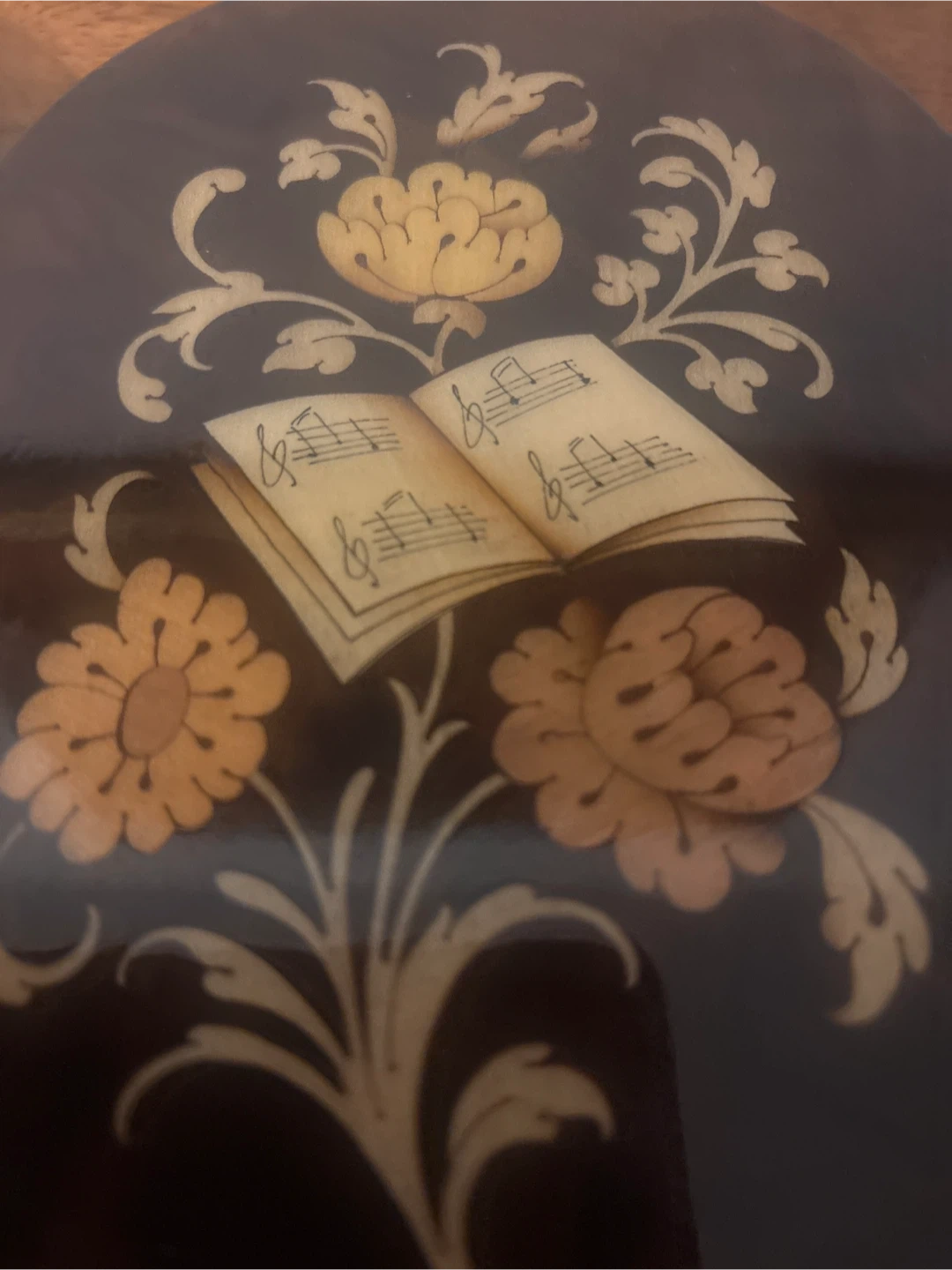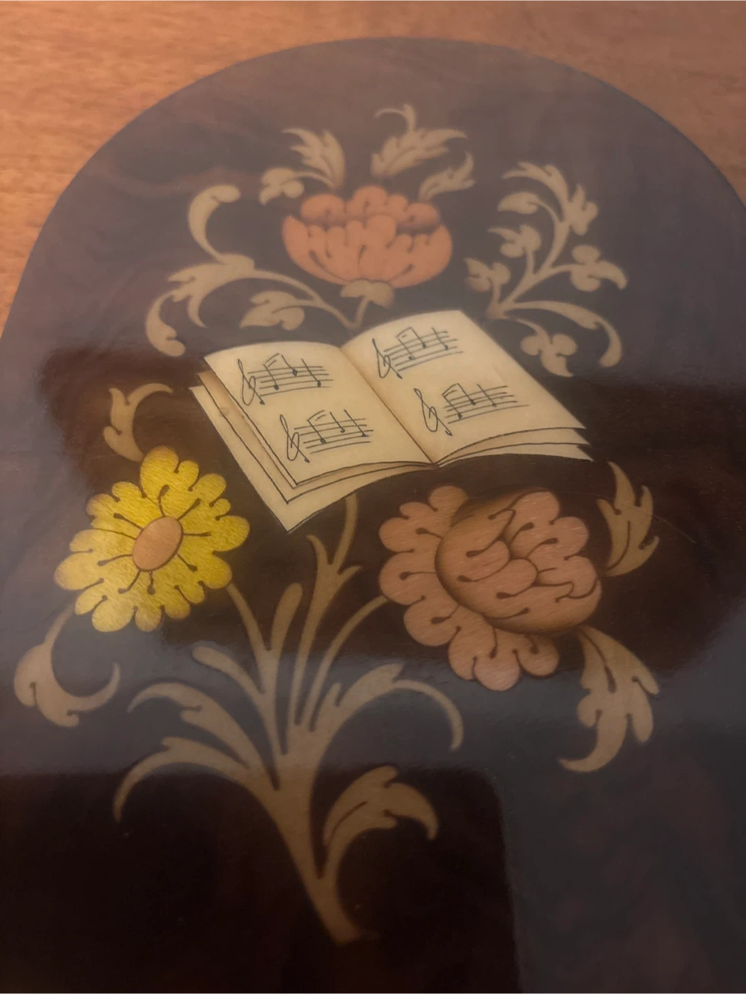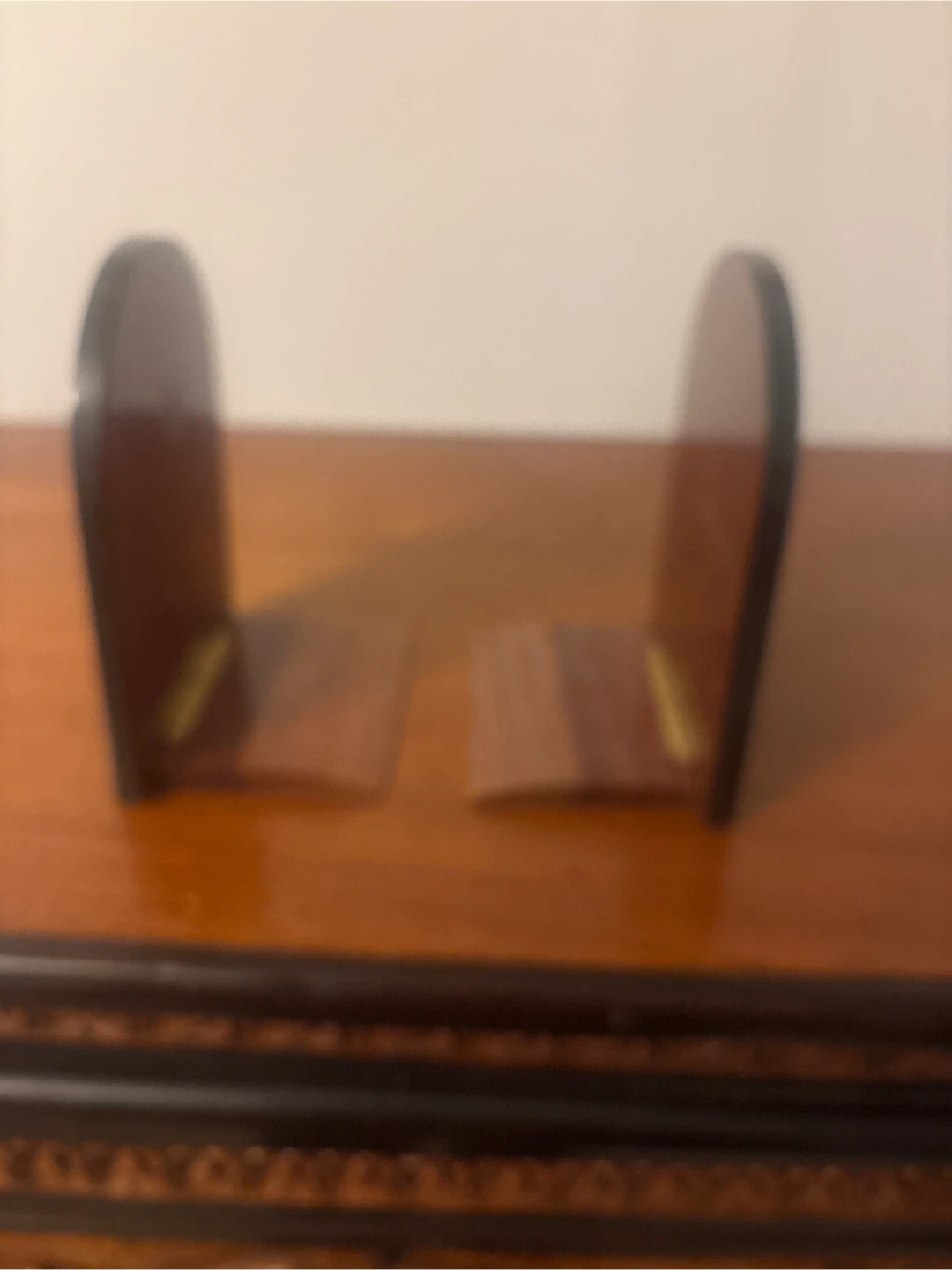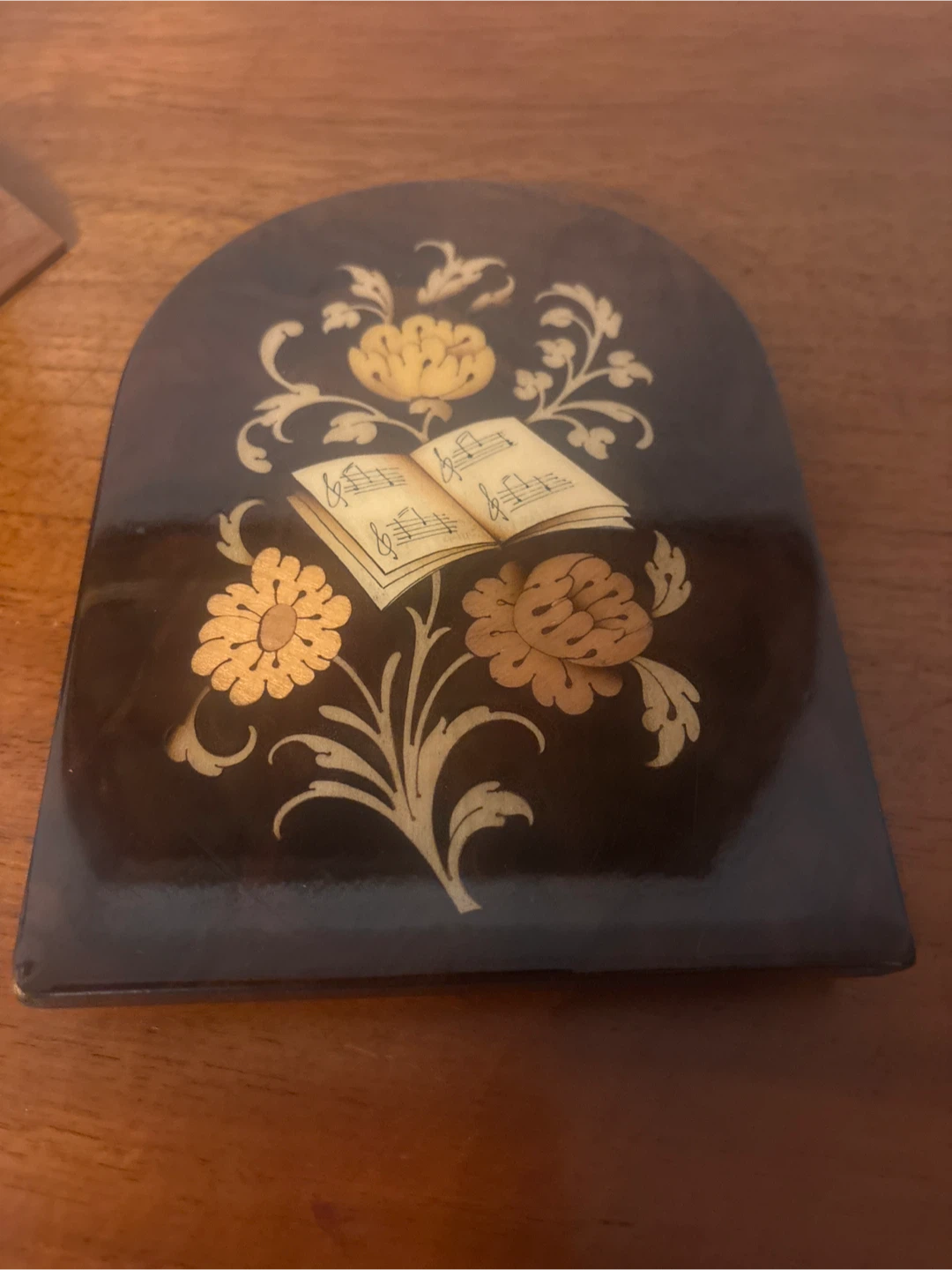 Selling a pair of vintage bookends. They feature a dark wood finish with inlaid floral and music book designs. Perfect for adding a touch of classic charm to your bookshelf!
