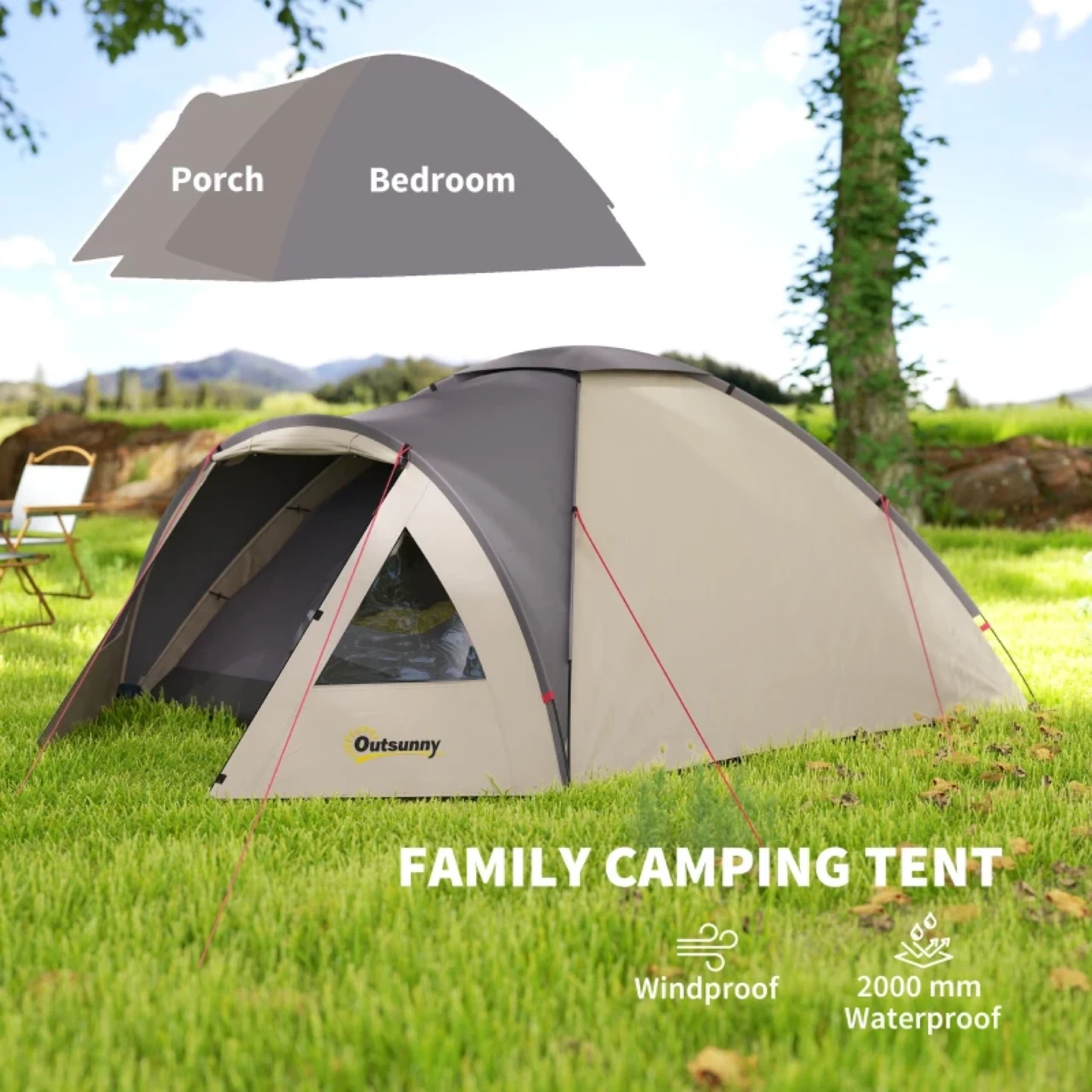 Outsunny 3 Person Camping Tent - Family Dome Tent w Bedroom