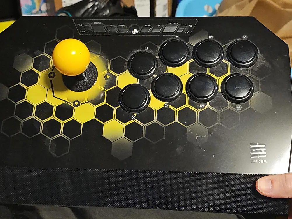 Selling a Qanba Obsidian arcade fight stick. It's in good condition and ready for some serious gaming! Features a yellow ball top joystick and the classic 8-button layout. Perfect for fighting games on PlayStation and PC