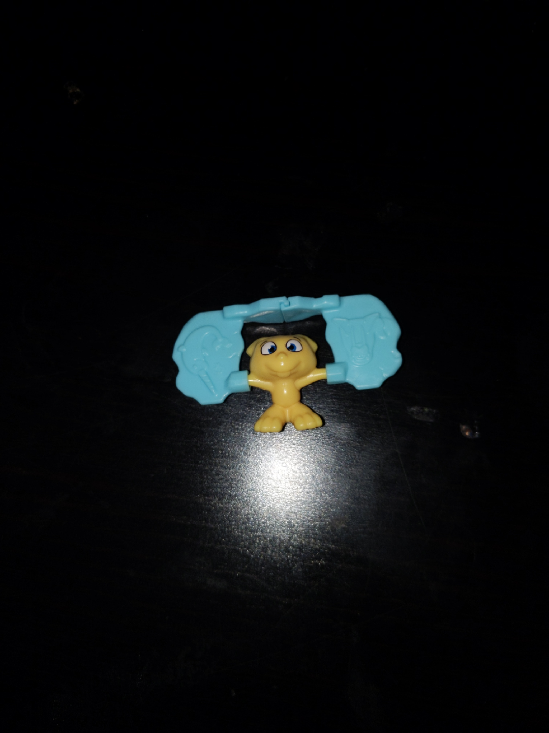 A Kinder Surprise toy figure! It's a cute little yellow character with a blue accessory. Great for collectors or as a small gift
