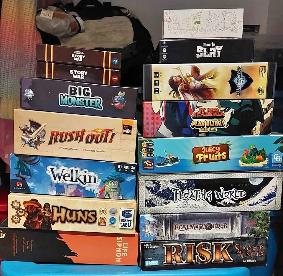 15Clearing out some board games that don't get played as often. All games are complete and in great condition. Buy 2 get $5 off. Buy all For $100 $20 Each Juicy Fruits Rush Out! $15 Each Life Siphon Huns Welkin Big Monster Floating World Realm of Wonder $10 Each Here To Slay Unstable Unicorns Story War Super Story War My Hero Academia Plus Ultra! Guardians Call open to trades for other board games