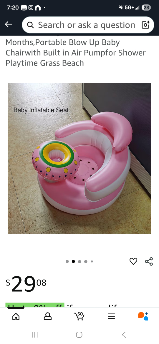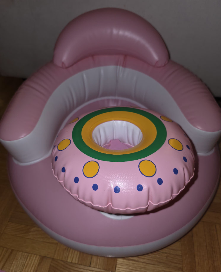 Selling a gently used baby inflatable seat in pink! It's perfect for infants who are learning to sit up. It's lightweight and easy to bring on the go.