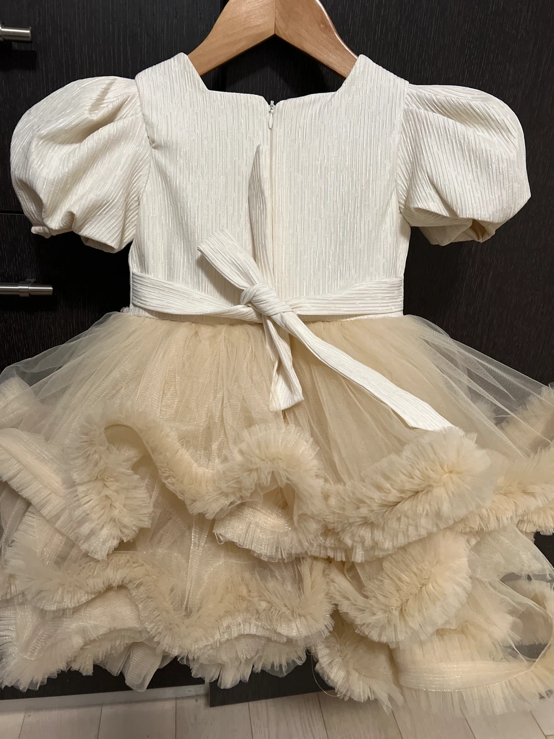 34Selling a beautiful Süslü Pink dress for girls, size 4 years. It features a lovely design with pearl-like embellishments and a layered tulle skirt. Perfect for parties or special occasions!