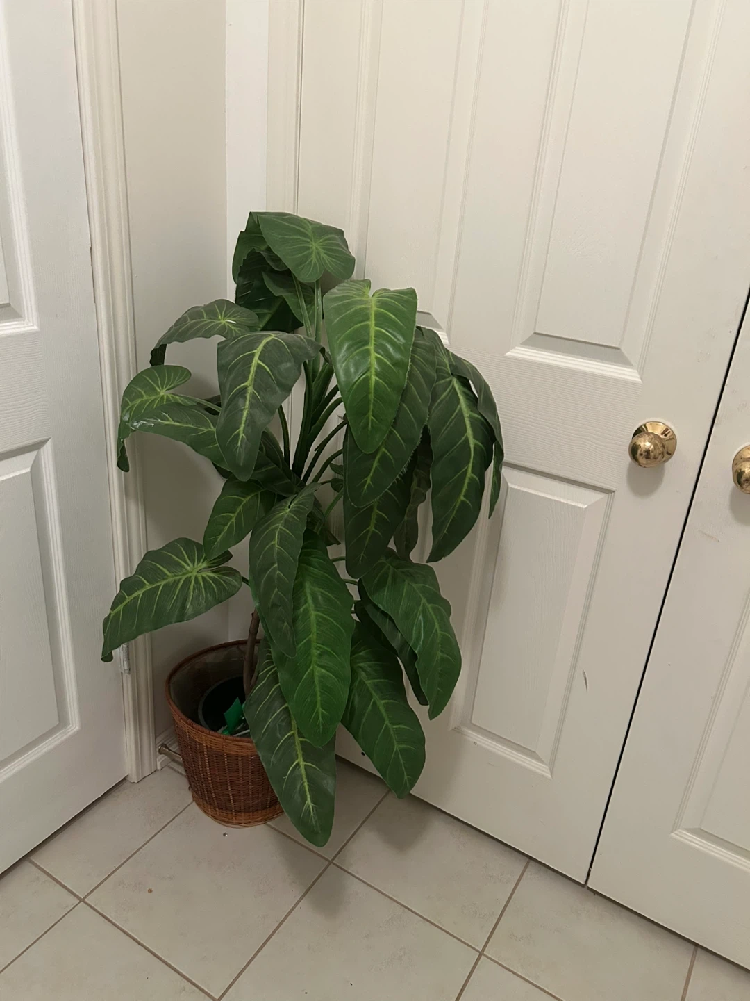 Selling a lovely philodendron plant in a wicker pot! It's a beautiful addition to any room and adds a touch of nature to your home. The plant appears to be in good condition with healthy, vibrant leaves.