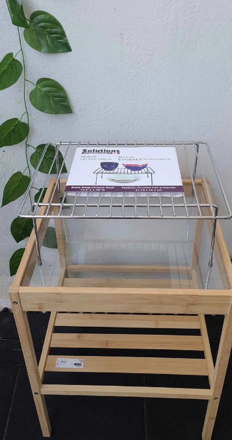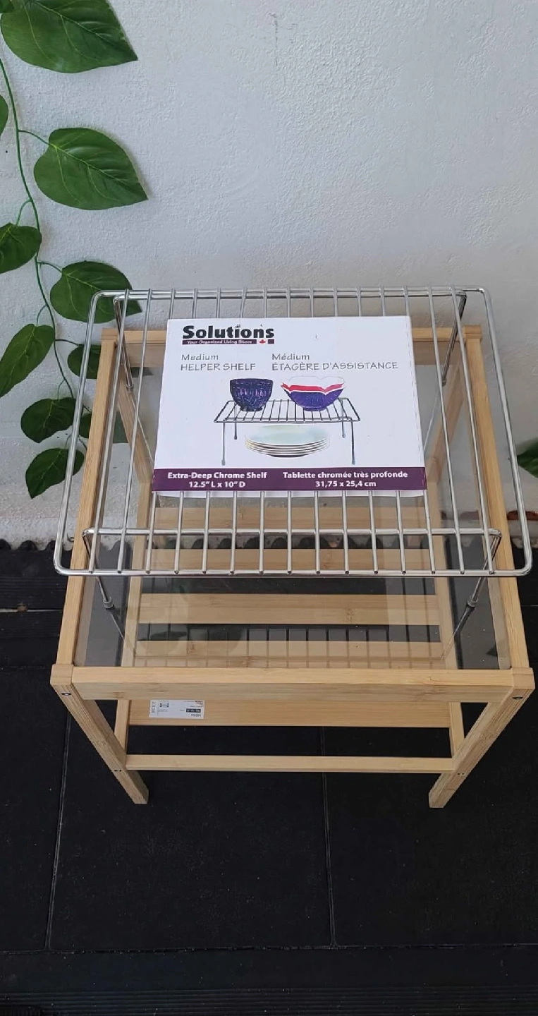 If the Ad is up it's Available. Brand new 4pcs still in the original packaging. This is a "Solutions" brand medium-sized helper shelf, perfect for adding an extra level of storage in your kitchen cabinets, pantry, or even on a countertop. It helps to organize dishes, spices, cans, and more, making use of vertical space. Condition: Brand new, never used. Material: Strong Durable chrome-plated metal. Dimensions: 12.5" x 10" (31.75 cm x 25.4 cm) Purpose: Ideal for kitchen organization, but can also be used in bathrooms, offices, or anywhere you need extra space. From Smoke Free | Pet Free Home 📍Wellesley and Sherbourne Check my other listings as well.