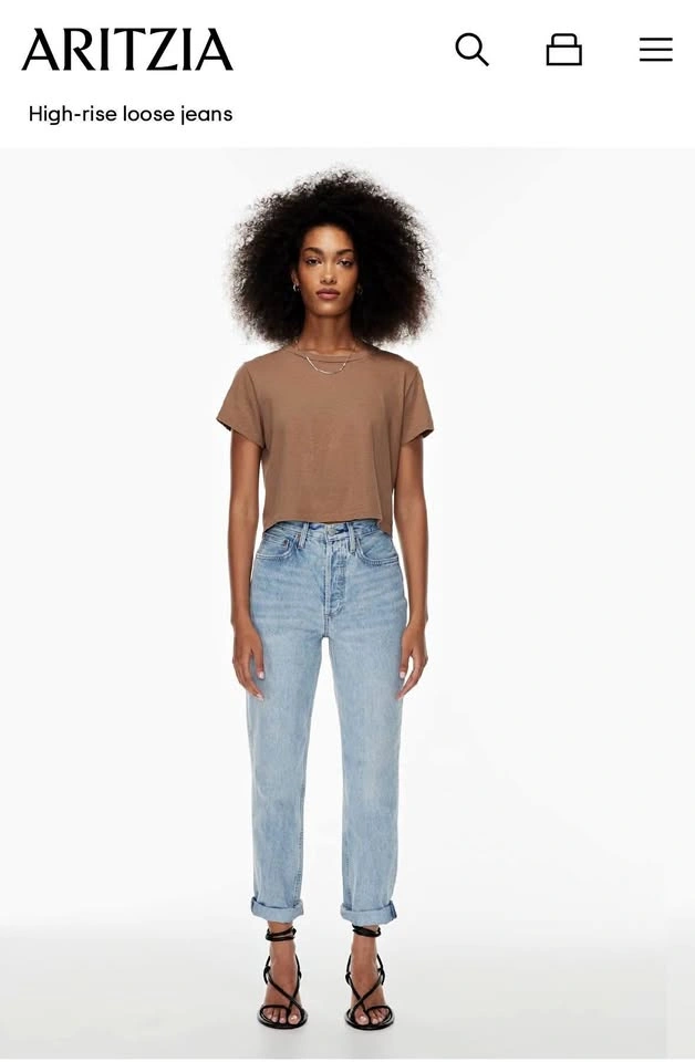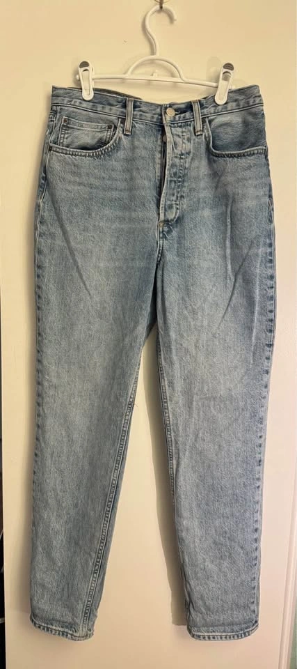 aritiza denim forum boyfriend high rise loose jeans size 28 waist, medium/light blue