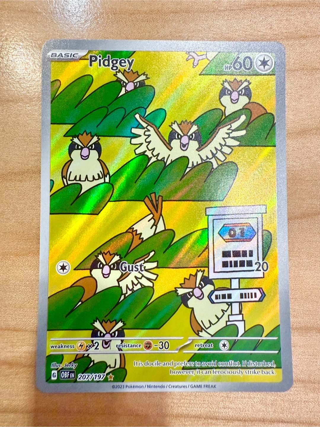 15Selling a Pidgey Pokémon card from the Obsidian Flames set, card number 207/197. It's in great condition and ready for a new home! A great addition to any collection!