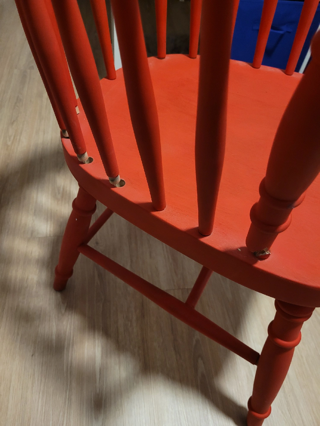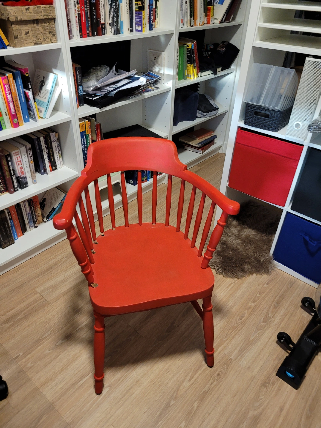 giving away a red retro chair! It's a sturdy and stylish piece that would look great in any room. The chair needs some repairs though - shown in the picture