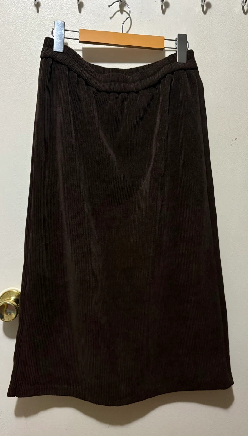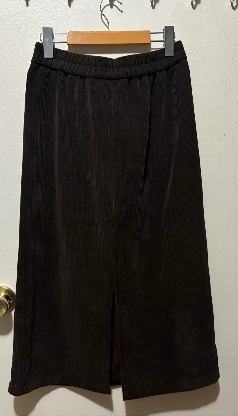 656A lovely brown corduroy Midi skirt with back slit Perfect for fall! It's in excellent condition and ready for a new home. New without tag. ➡️The price is firm.