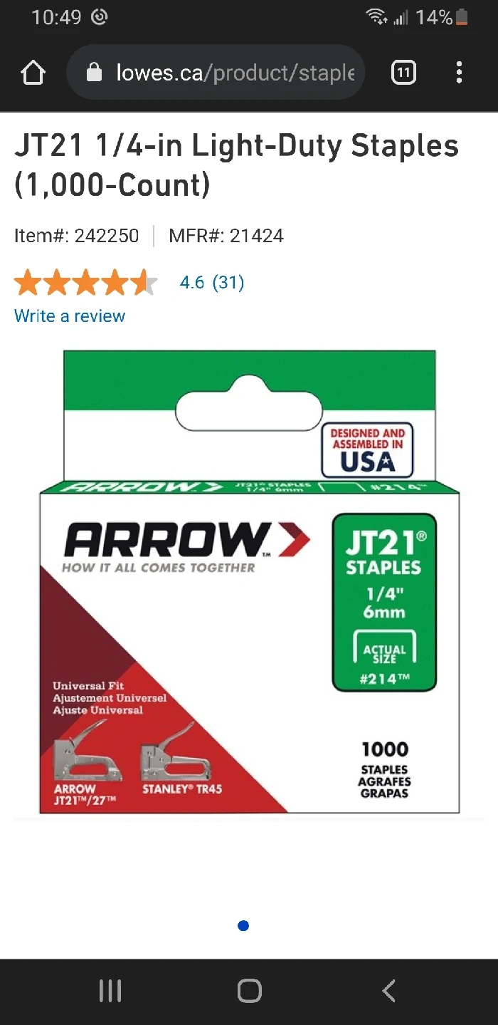 Selling a bunch of Arrow JT21 staples! These are 1/4-inch light-duty staples, and each box contains 1,000 staples. Perfect for any light-duty stapling needs!