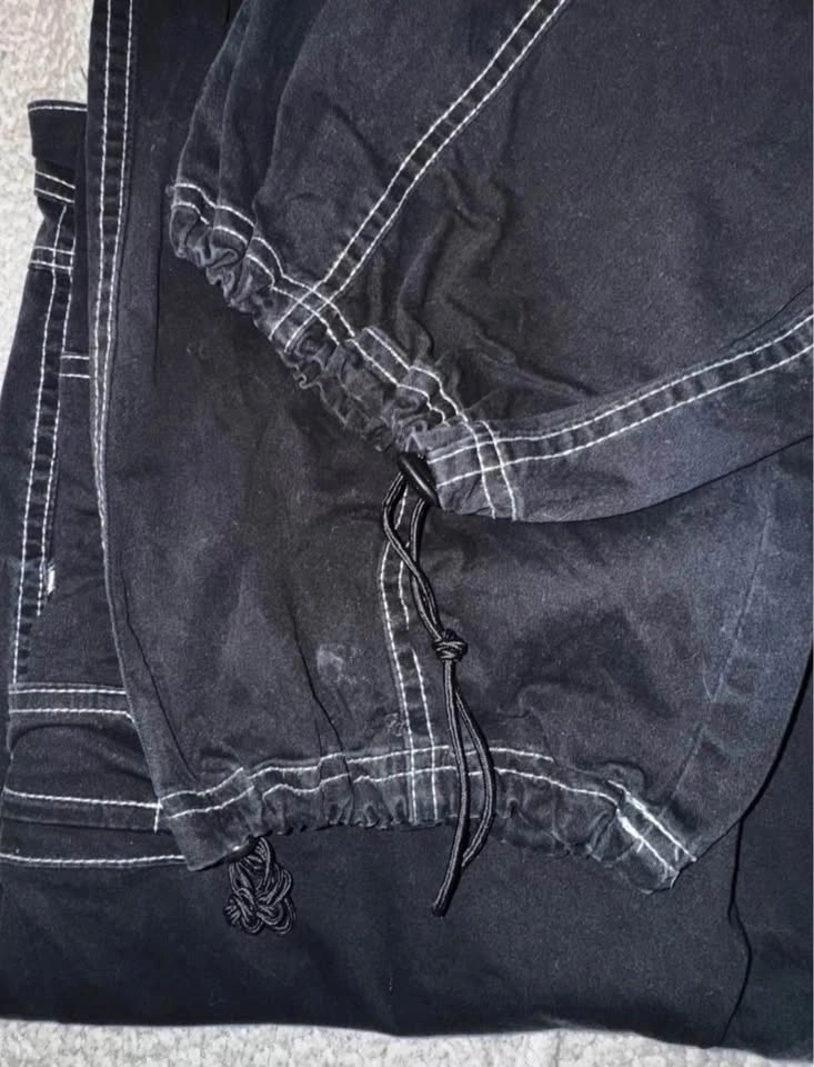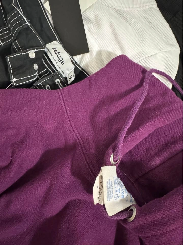 74Sweater and cargo pants both size Medium. Black and white long sleeves are both size Small. Sneakers are size 4.5Y. Pick up only Brampton McLaughlin and Steels