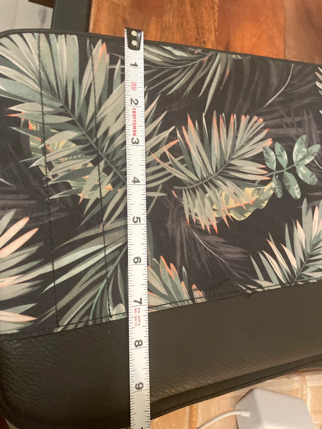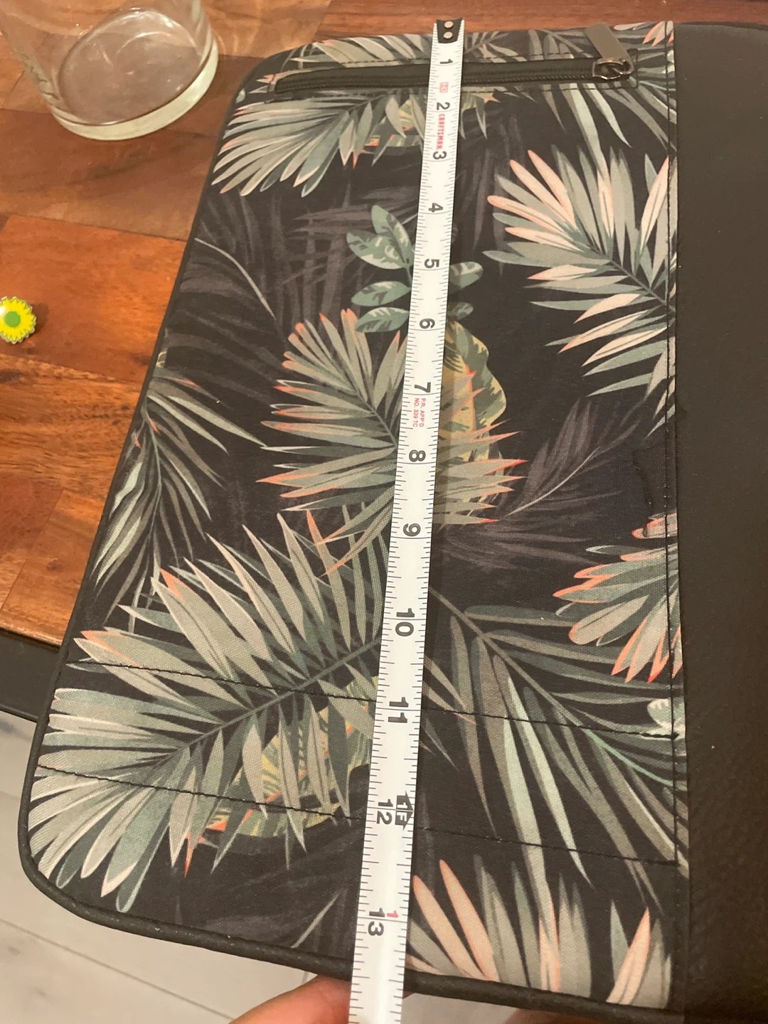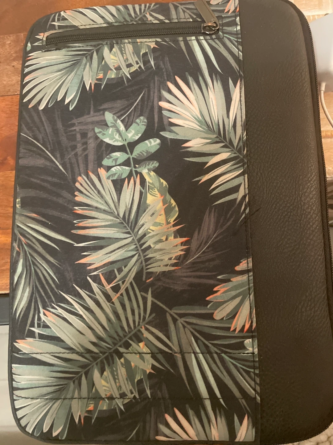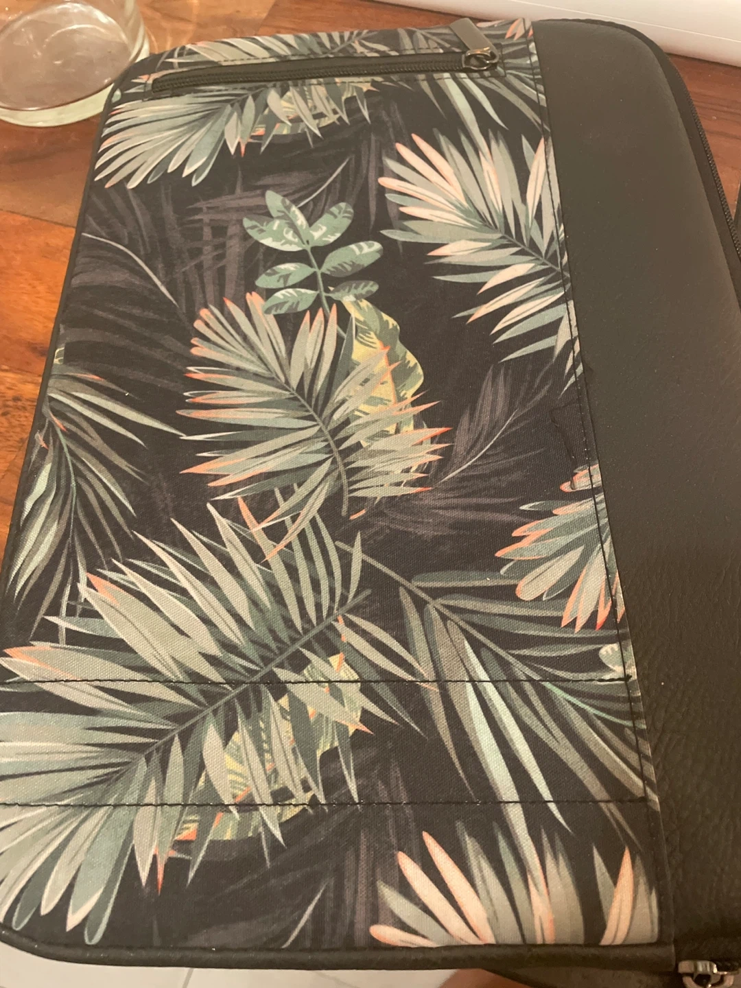 277Laptop case with a cool palm leaf pattern! It's about 13 inches in size, perfect for protecting your laptop. The inside is lined with soft, black material to keep your device safe from scratches