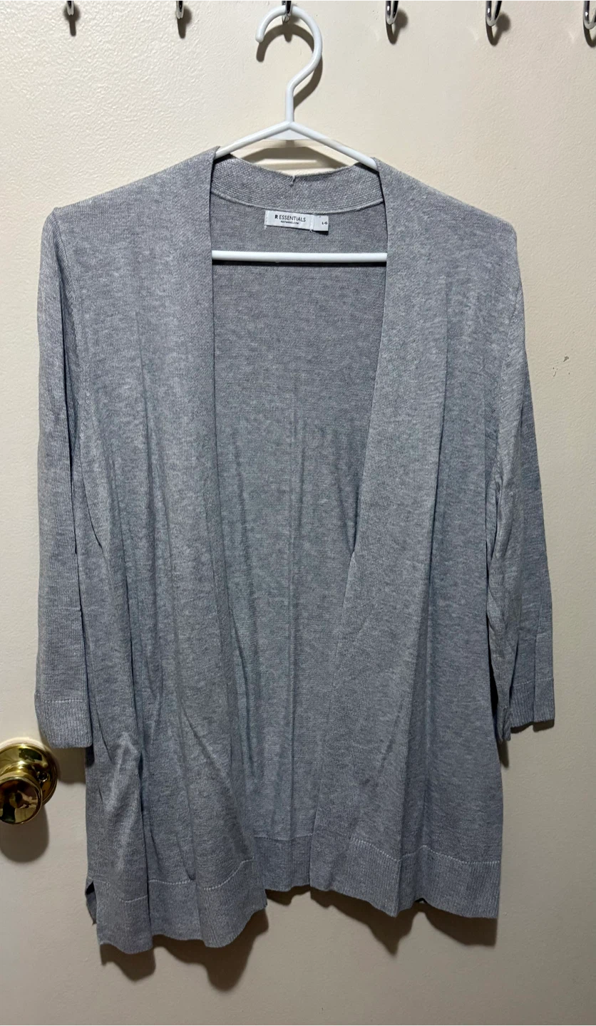 Selling a grey R Essentials 3/4 sleeve cardigan in size L