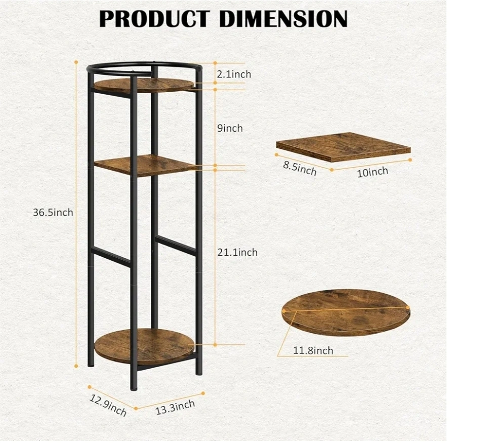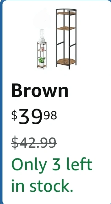 316This 3-tier plant stand is perfect for adding a touch of rustic charm to your space! It's great for displaying plants, water jugs, or other decorative items. Key features: - Colour: Brown - Dimensions: 36.54 inches (height), 12.99 inches (width), 13.39 inches (depth) - Shelf dimensions: 11.81 inches x 10.08 inches - Originally bought for $39.98