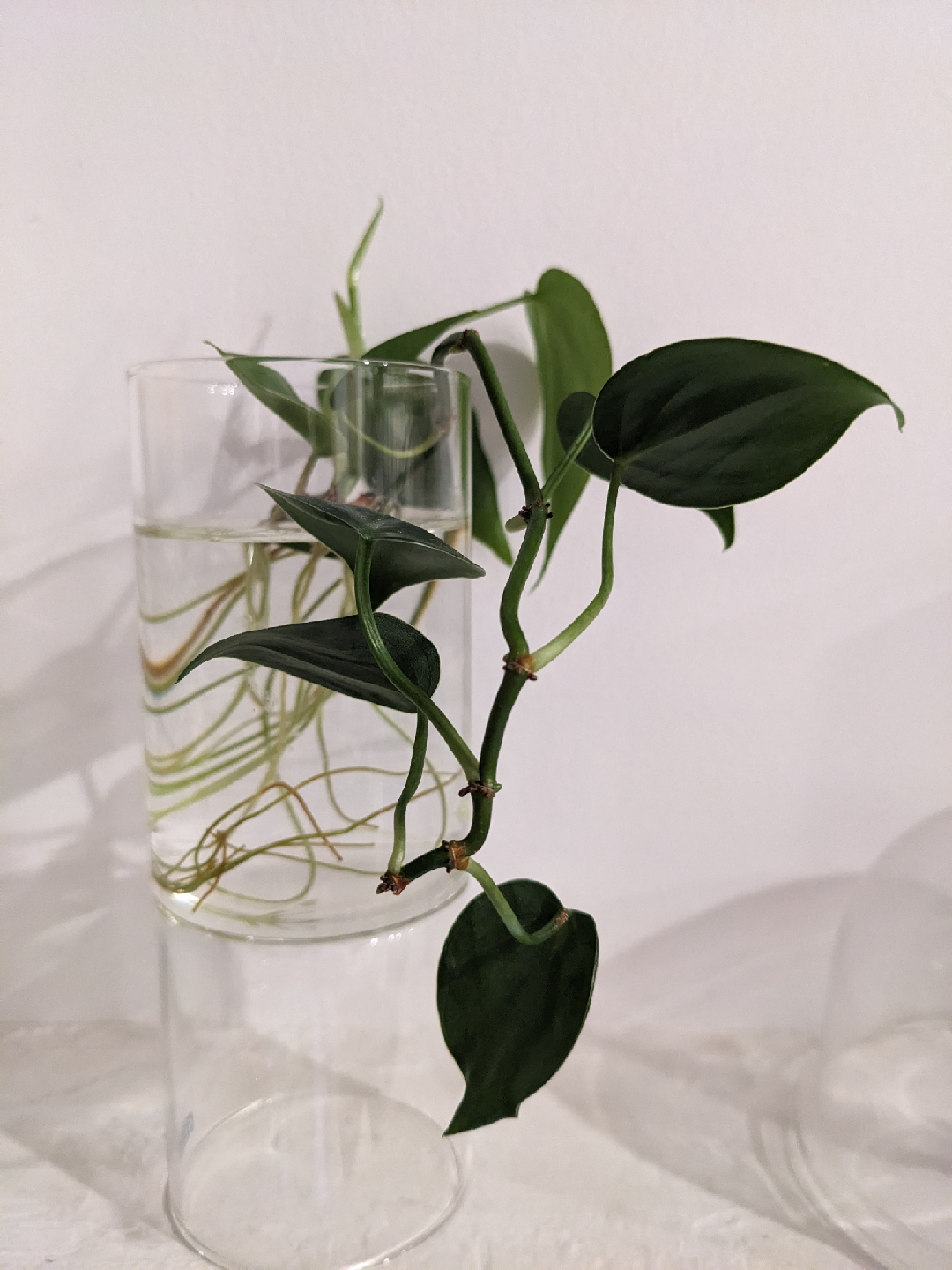 I'm selling a healthy Heartleaf Philodendron cutting, already rooted in a simple glass vase! It's a low-maintenance plant, perfect for adding a touch of green to any space