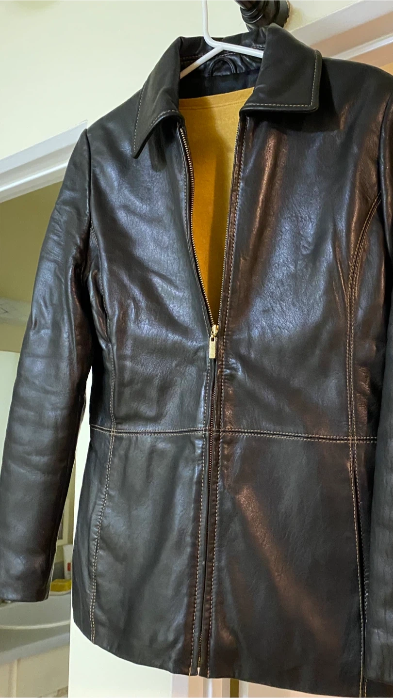 Selling a brown leather jacket. It has a zipper and is in good condition. Perfect for fall! Isulated for extra protection.