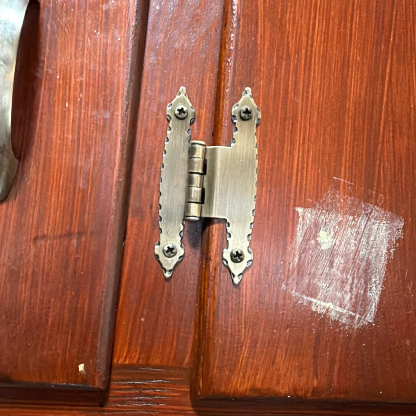 Selling a collection of vintage cabinet hinges. They appear to be made of metal, possibly brass, and have a decorative design. They would be great for a restoration project or adding a vintage touch to your cabinets