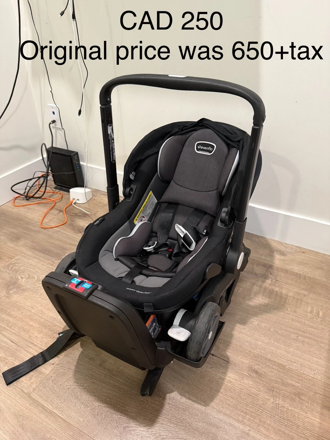 Selling an Evenflo Shyft DualRide infant car seat and stroller combo! It's in good condition and ready for a new family. This versatile system makes transitioning from car to stroller a breeze. Originally bought for $650 + tax, asking $250
