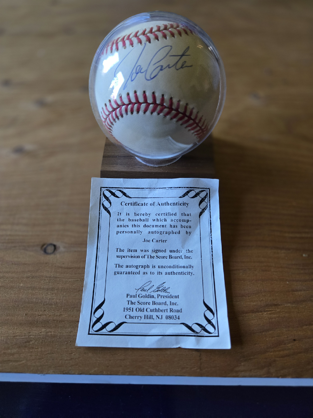 Selling a Joe Carter autographed 1993 World Series official baseball! It comes with a certificate of authenticity from The Score Board, Inc. The autograph is unconditionally guaranteed to its authenticity. A great piece for Collectors and Blue Jays fans!