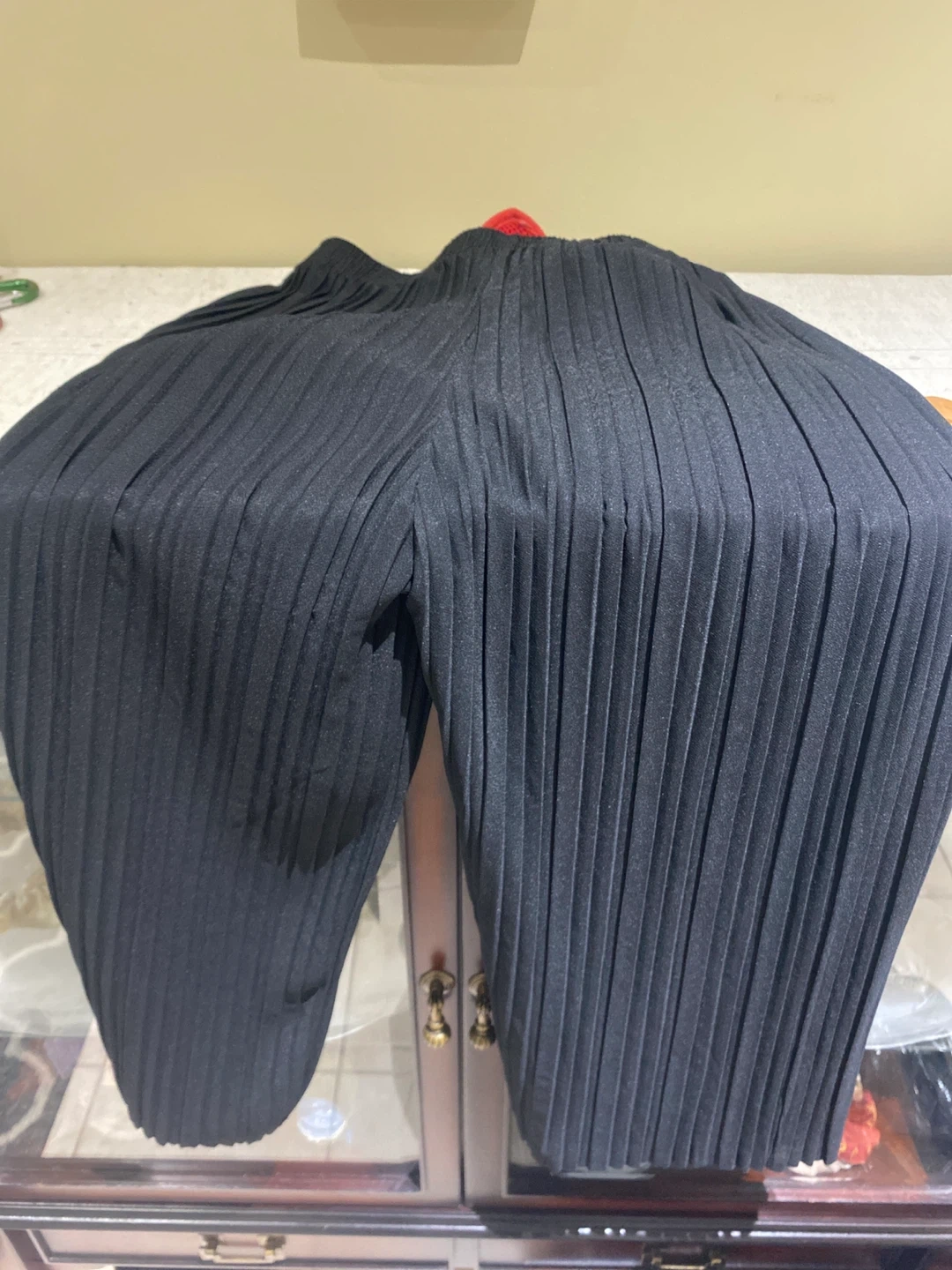 Selling a pair of black pleated pants. They're in great condition and ready for a new home! The material is comfortable and the pleats give them a stylish look