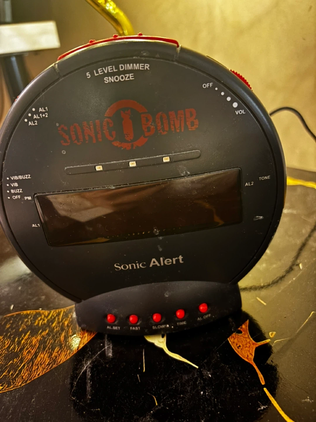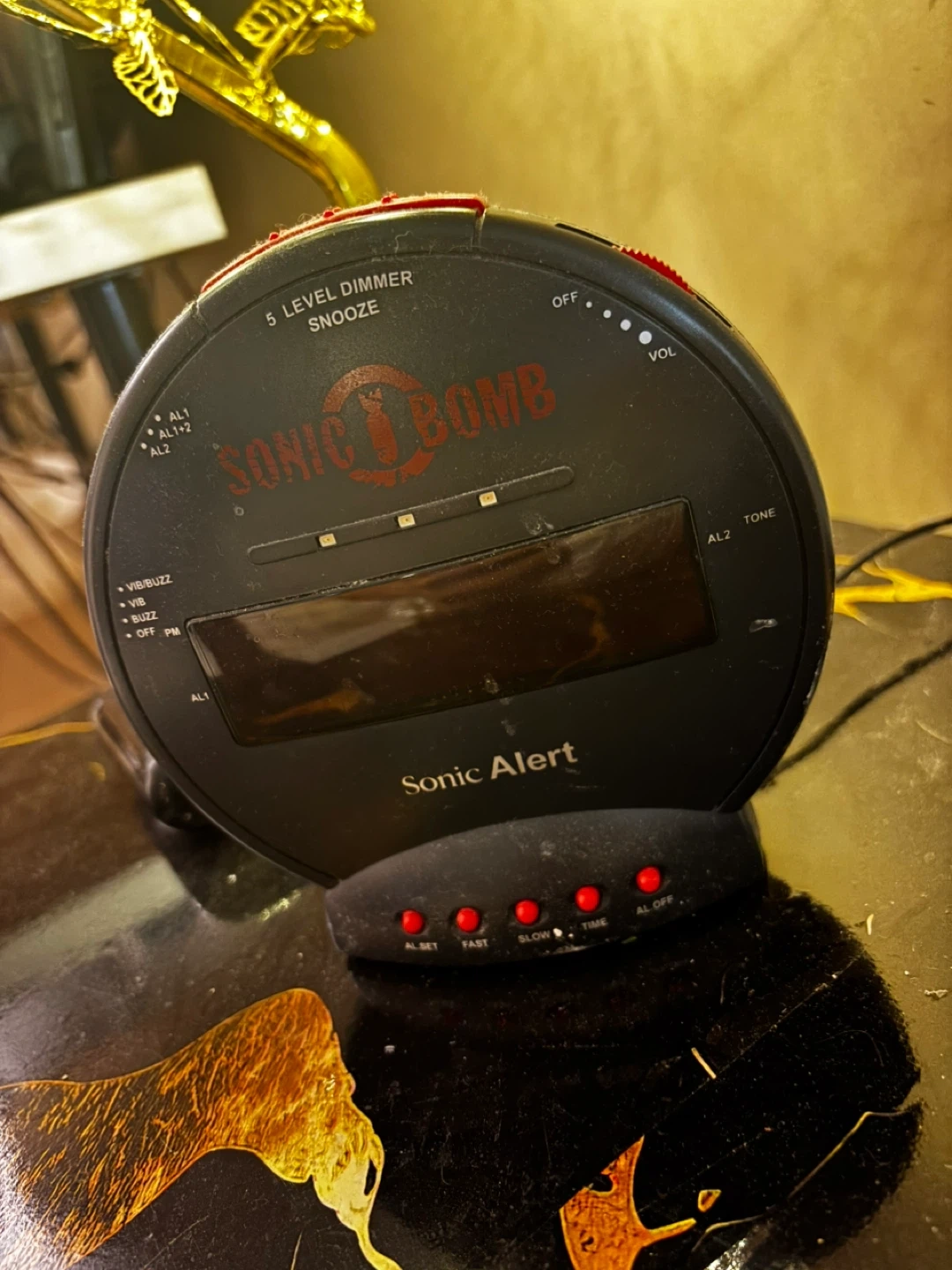 95Selling a Sonic Alert Sonic Bomb Dual Alarm Clock with Bed Shaker. It features a 5 level dimmer and snooze function. Great for heavy sleepers! Pick up and cash only.