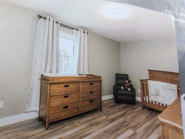 10Create a warm and inviting nursery with this full kids room set! It includes 2 dresser that doubles as a changing table, a cozy crib. This gently used set is in good condition, ready to bring comfort and style to your little one's room. * ( 2 )Six Drawer Dresser & Changing Table Combo: Spacious drawers for storage and a convenient changing surface. * Crib: Sturdy and safe design for peaceful sleep. Turns into a twinsize bed allowing it to grow with your child. Please note there is NO CHAIR Only picture I have. This set has been lovingly cared for and is great condition. $800 obo
